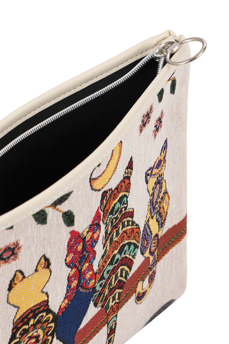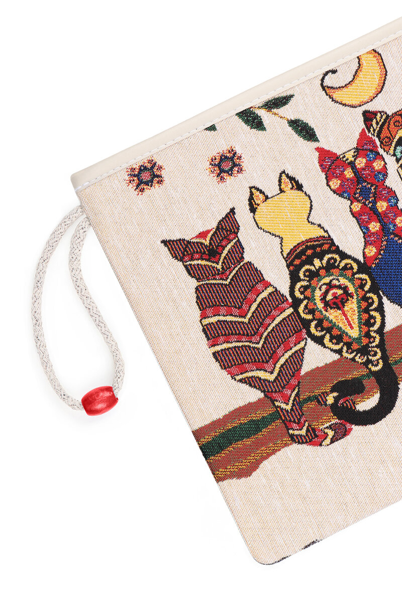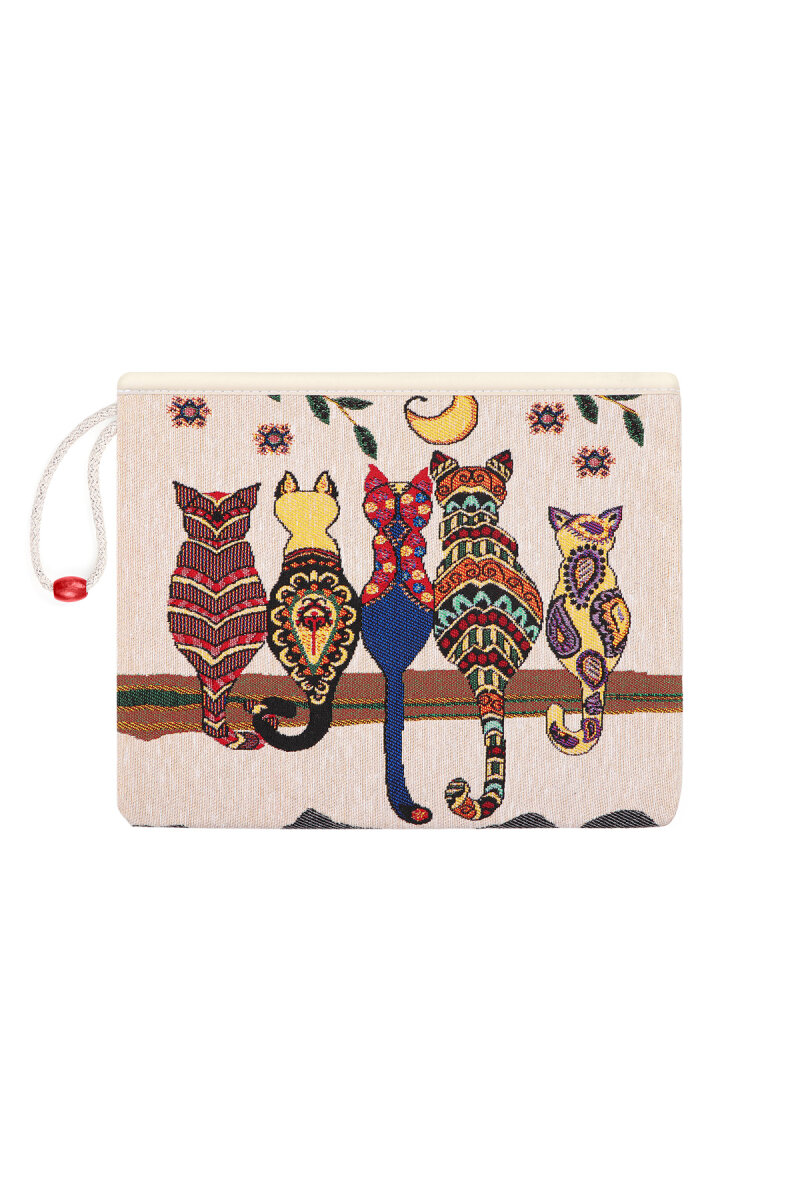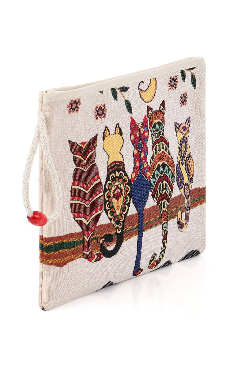 Goblen işlemeli çantalar özellikle el yapımı tasarımlarda popülerdir. İşlenmiş desenler, deri veya bez gibi farklı malzemelerle birleştirilir. Kedi desen goblen el çantamız 23x29 cm boyutları ile kullanım kolaylığı sunuyor.