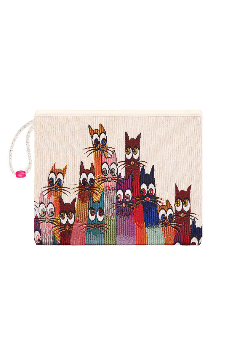 Goblen işlemeli çantalar özellikle el yapımı tasarımlarda popülerdir. İşlenmiş desenler, deri veya bez gibi farklı malzemelerle birleştirilir. Kedi desen goblen el çantamız 23x29 cm boyutları ile kullanım kolaylığı sunuyor.