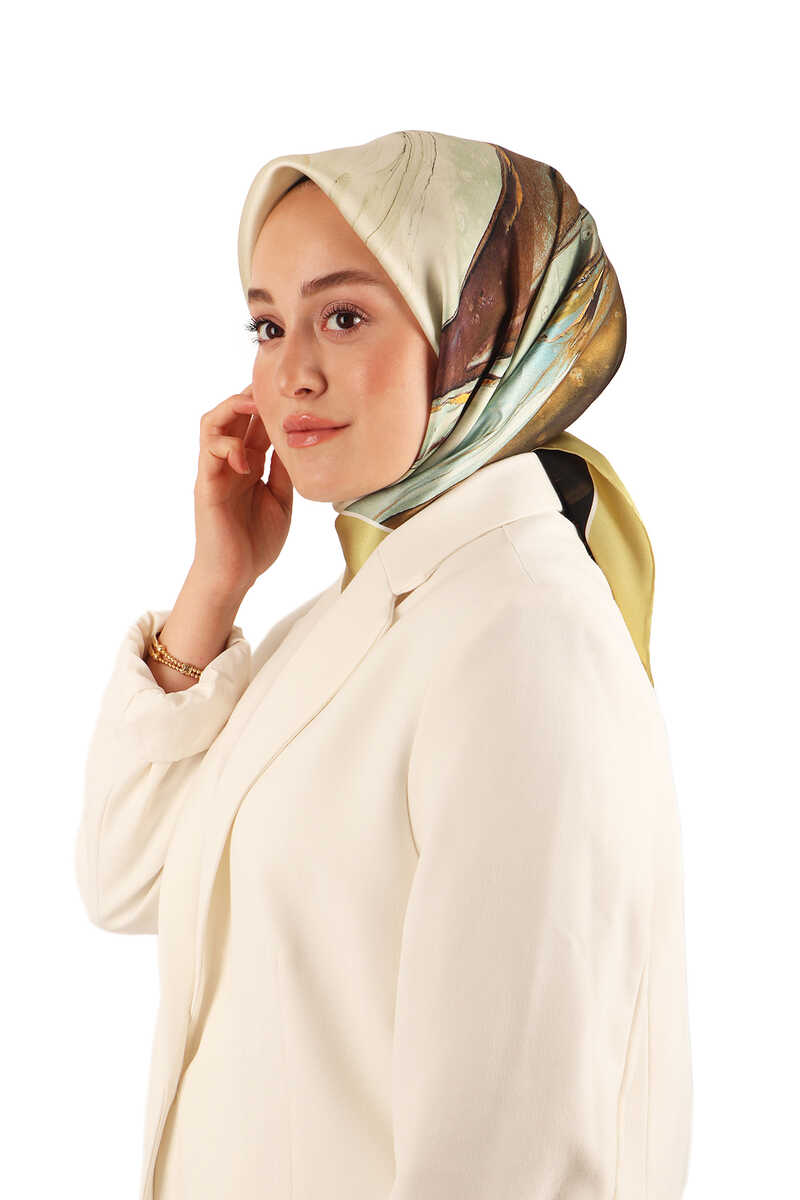 Asit Yeşil Granit Desen Sura İpek Eşarp