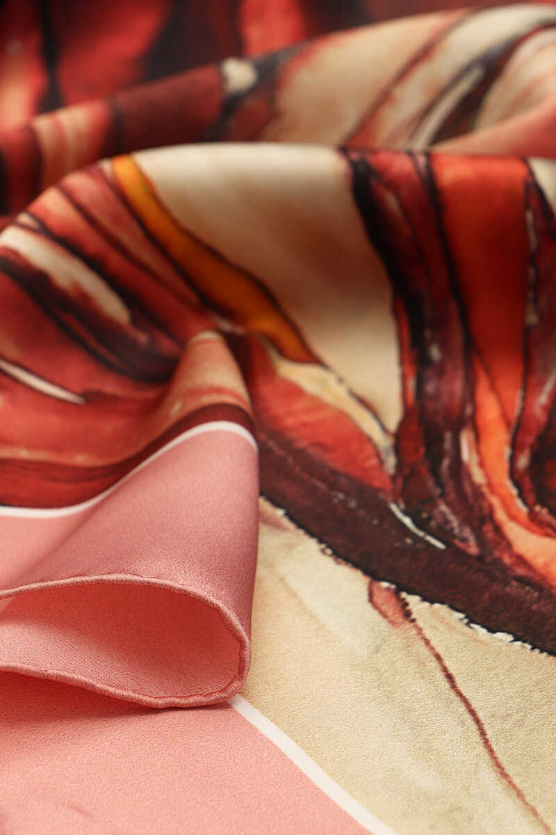 İpeğin eşsiz zarafetine yansıtılmış Somon Granit Desen Sura İpek Eşarp ile sizler de farklı güzellikteki bütünlüğün atmosferini hissedeceksiniz. Ürünümüz; %100 İpek içeriği ile 90x90cm boyutlarıyla kullanım rahatlığı sunuyor.