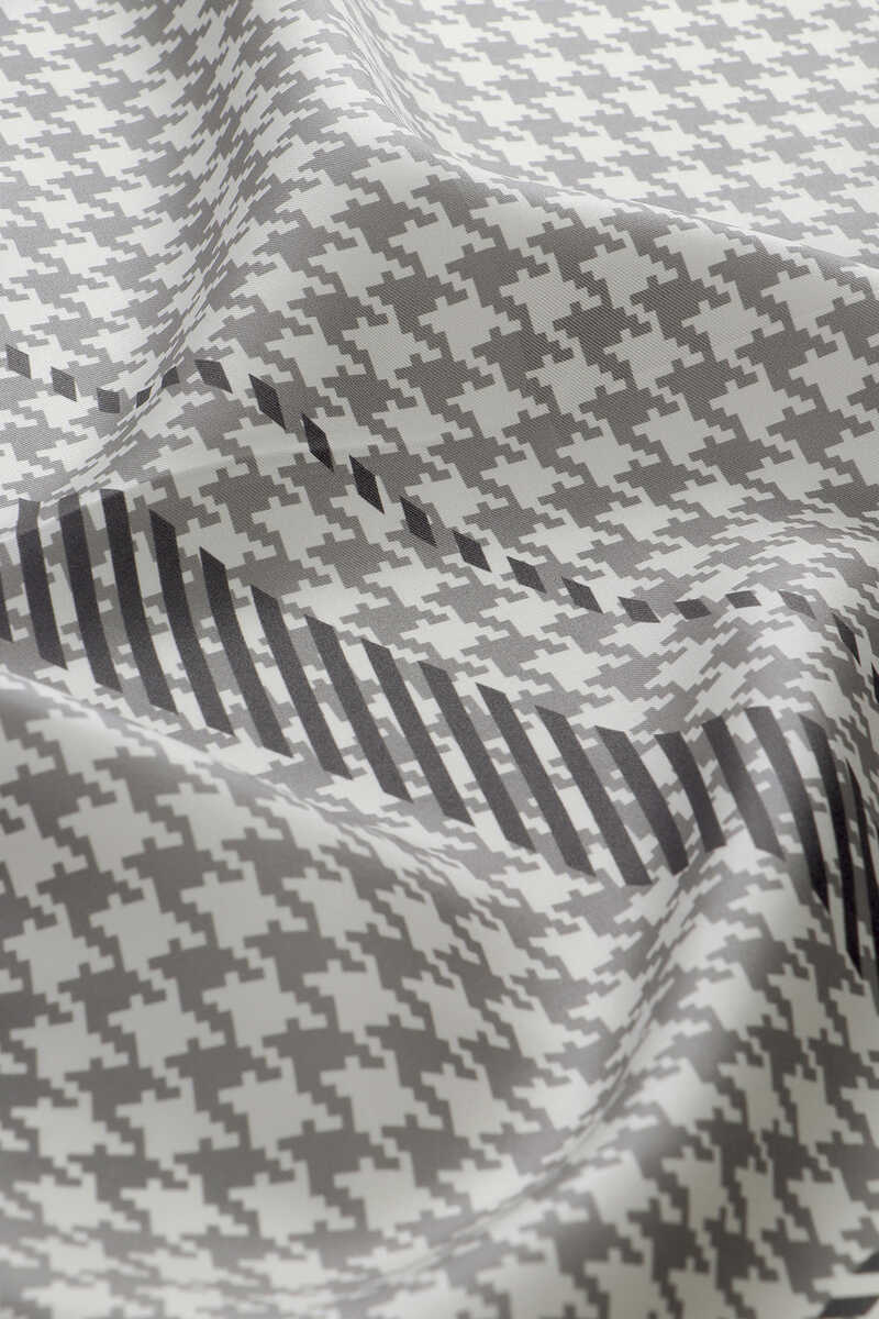 You will feel the atmosphere of integrity in different beauty with the Gray Line Houndstooth Pattern Twill Silk Square Scarf reflected in the unique elegance of silk. Our product; It offers ease of use with its 100% silk content and dimensions of 90x90cm.