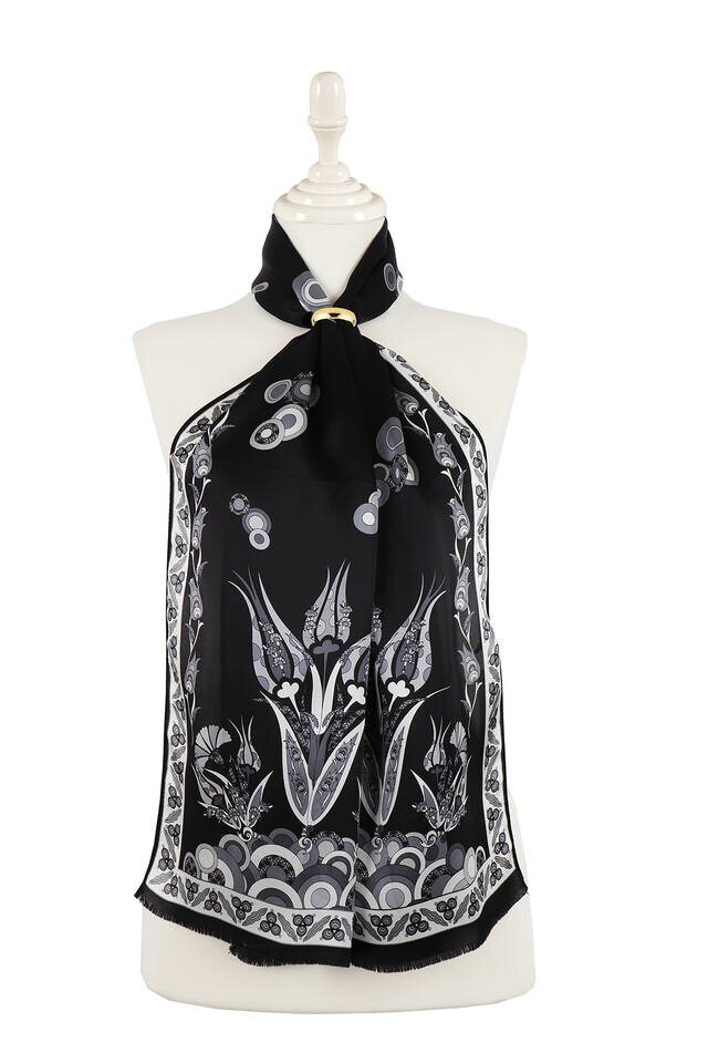 A special model that will complement your style, from the most serious business meeting to the most elegant art gallery, while adding elegance to your elegance. Our Gray Red Colored Çintemani Narrow Silk Foulard model with eye-catching patterns offers ease of use with its 100% silk content and dimensions of 35x155cm.