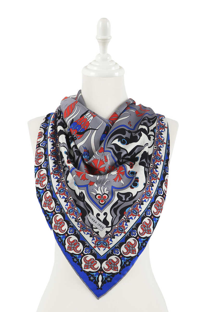 Gray Cintemani Carnation patterns are a fun and classic choice where silky fabric texture and bright and lively colors come together... Add energy to life with the silky texture of flowers! Our product: 100% silky rayon fabric offers ease of use with its dimensions of 90x90 cm.