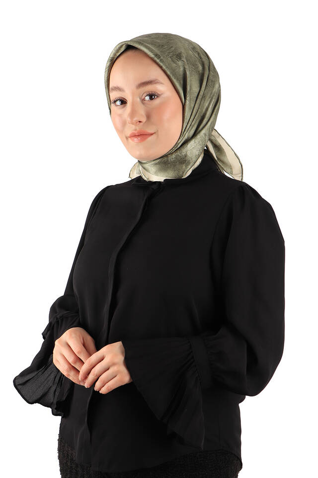 A timeless accompaniment to your classic and sports style, the Green Brush patterned silk Square Scarf; With its upright and solid stance and bright appearance, it adds value to you in the glittering world of fashion. It offers comfort of use with its 100% Silk content and 90x90cm dimensions.