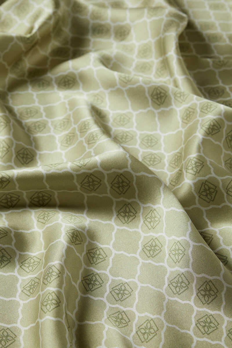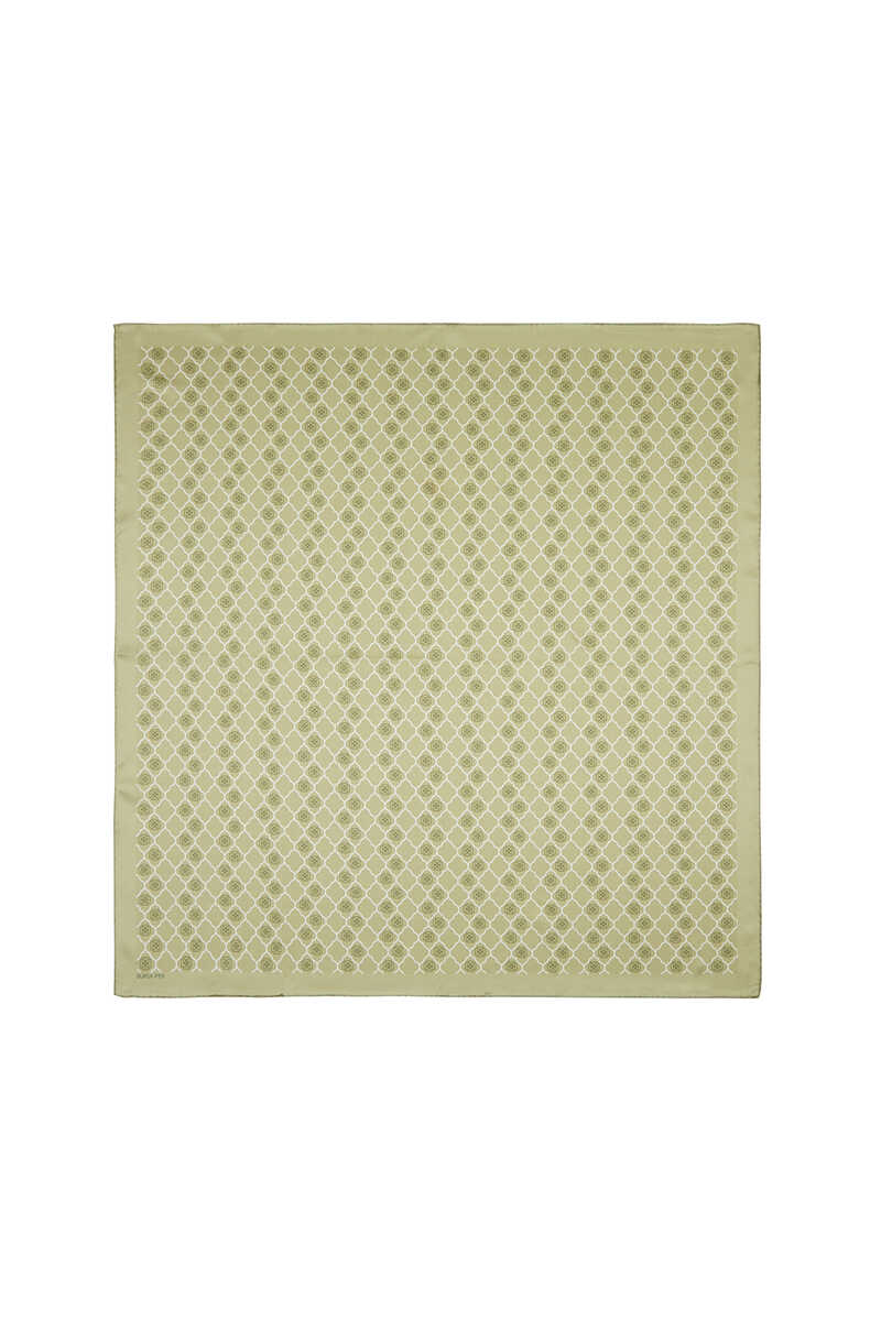 Green monogamous patterned silk Square Scarf, which is a timeless companion to your classic and sports style; With its upright and solid stance and bright appearance, it adds value to you in the glittering world of fashion. It offers comfort of use with its 100% Silk content and 90x90cm dimensions.
