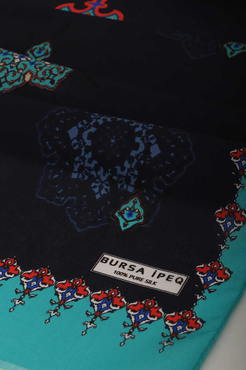 special model that will complement your style, from the most serious business meeting to the most elegant art gallery, while adding elegance to your elegance. Our Green Navy Blue Colored Voile Silk Foulard model with eye-catching patterns offers ease of use with its 100% silk content and dimensions of 35x150cm.