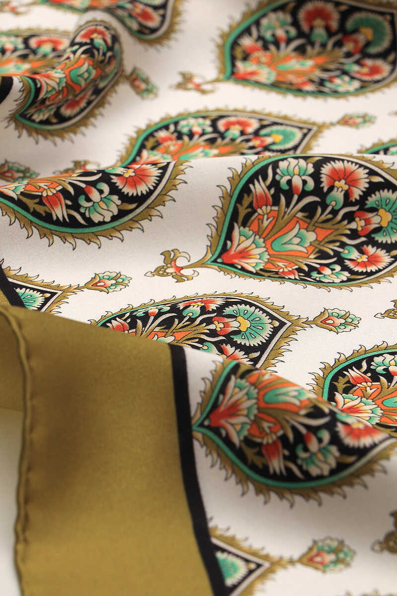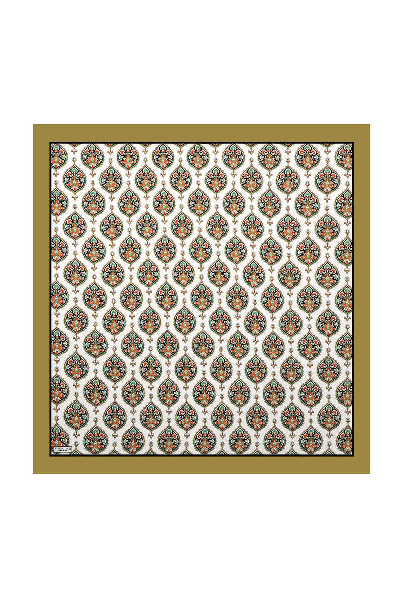 İpeğin eşsiz zarafetine yansıtılmış Haki Hatai Desen Sura İpek Eşarp ile sizler de farklı güzellikteki bütünlüğün atmosferini hissedeceksiniz. Ürünümüz; %100 İpek içeriği ile 90x90cm boyutlarıyla kullanım rahatlığı sunuyor.