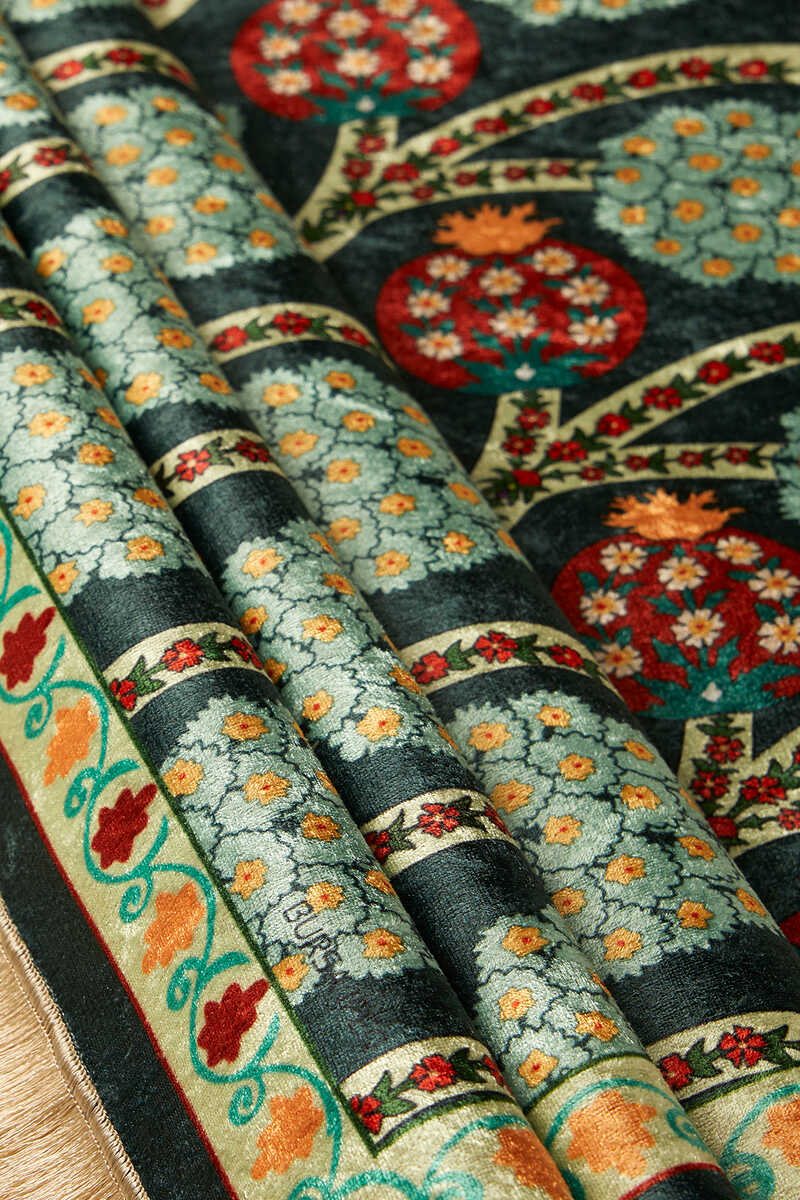 İpeksi dokusu, göz alıcı renkleri ile Türk motifli ve Çini desenli seccade halı modellerimiz dekoratif bir görünüm sunarken kadife dokusu 65x115cm ebatları ile rahat kullanımınız için özel olarak tasarlanmıştır.