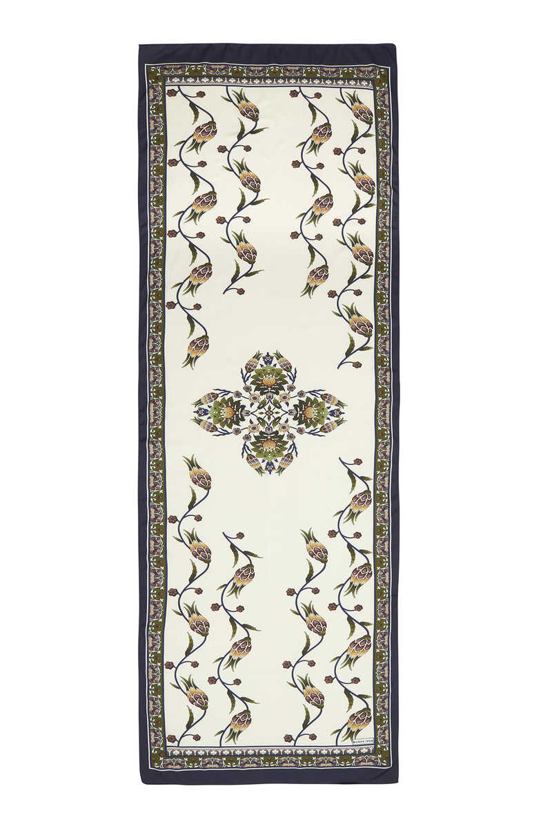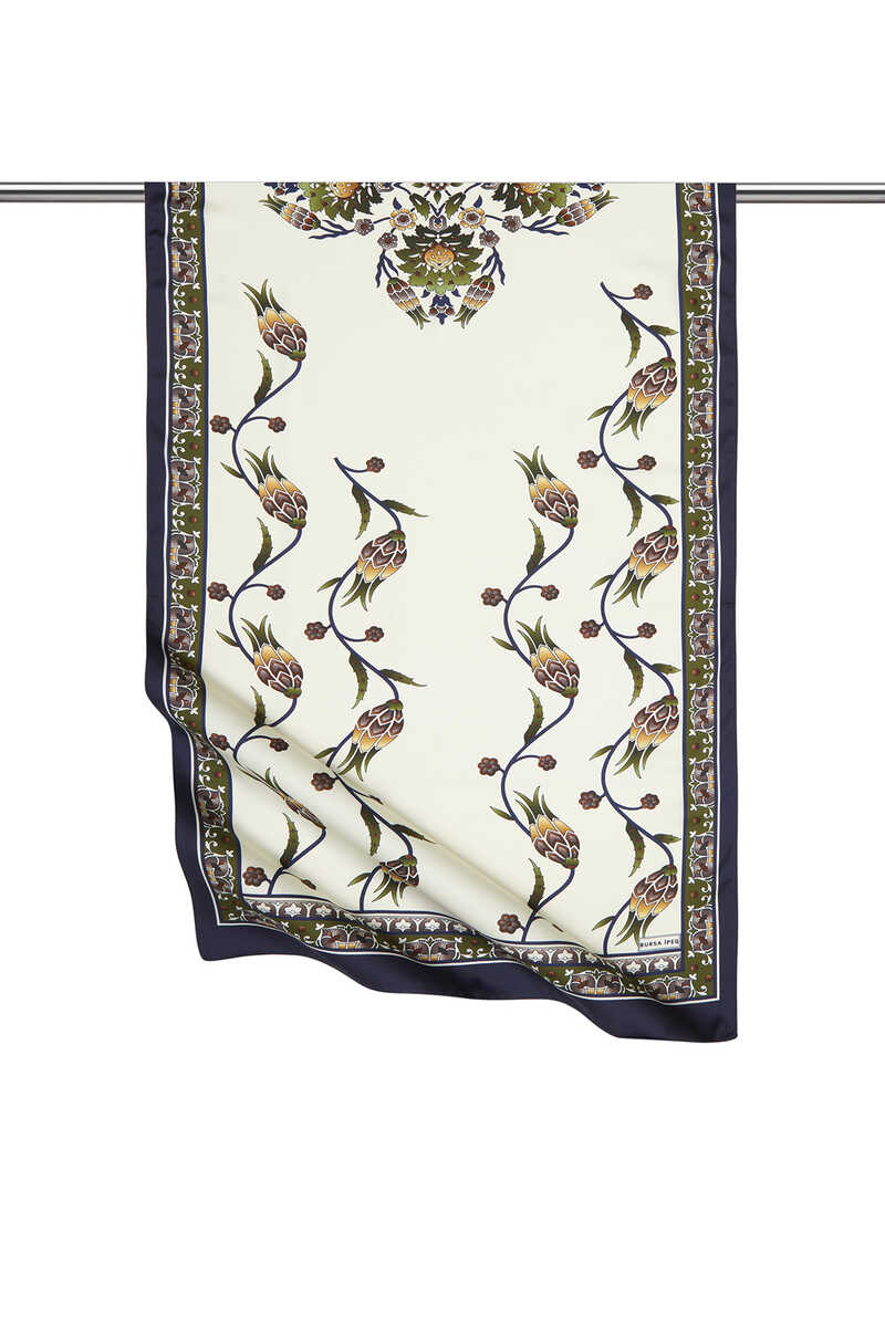 Haki Lacivert Sıra Lale desenlerinin ipeksi kumaş dokusu ile parlak ve canlı renklerle bir araya geldiği eğlenceli ve aynı zamanda klasik bir seçim… Çiçeklerin ipeksi dokuya büründüğü halleri ile hayata enerji katın! Ürünümüz: %100 ipeksi rayon kumaşı, 55x160cm boyutlarıyla kullanım kolaylığı sunuyor.