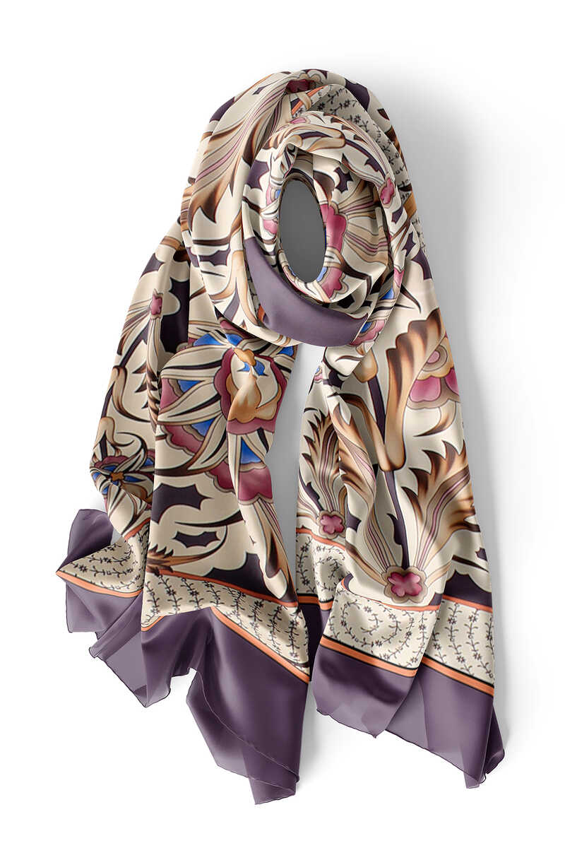 A special model that will complement your style, from the most serious business meeting to the most elegant art gallery, while adding elegance to your elegance. Our Purple Golden Horn Pattern Silk Foulard model with eye-catching patterns offers ease of use with its 100% silk content and 55x160cm dimensions.