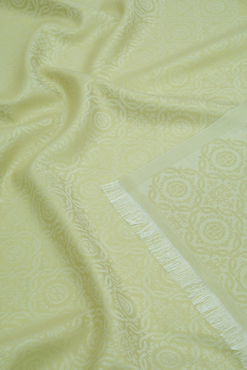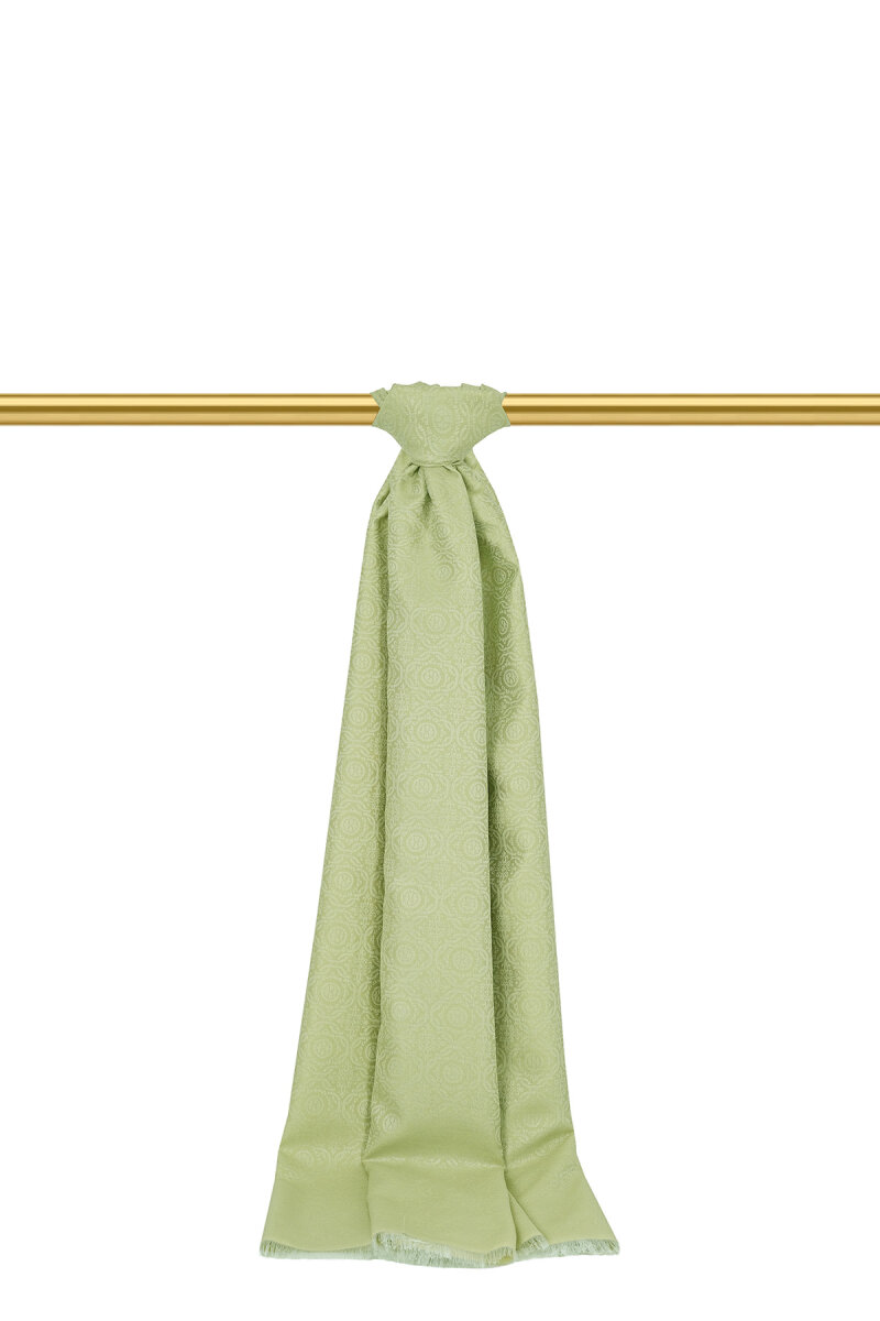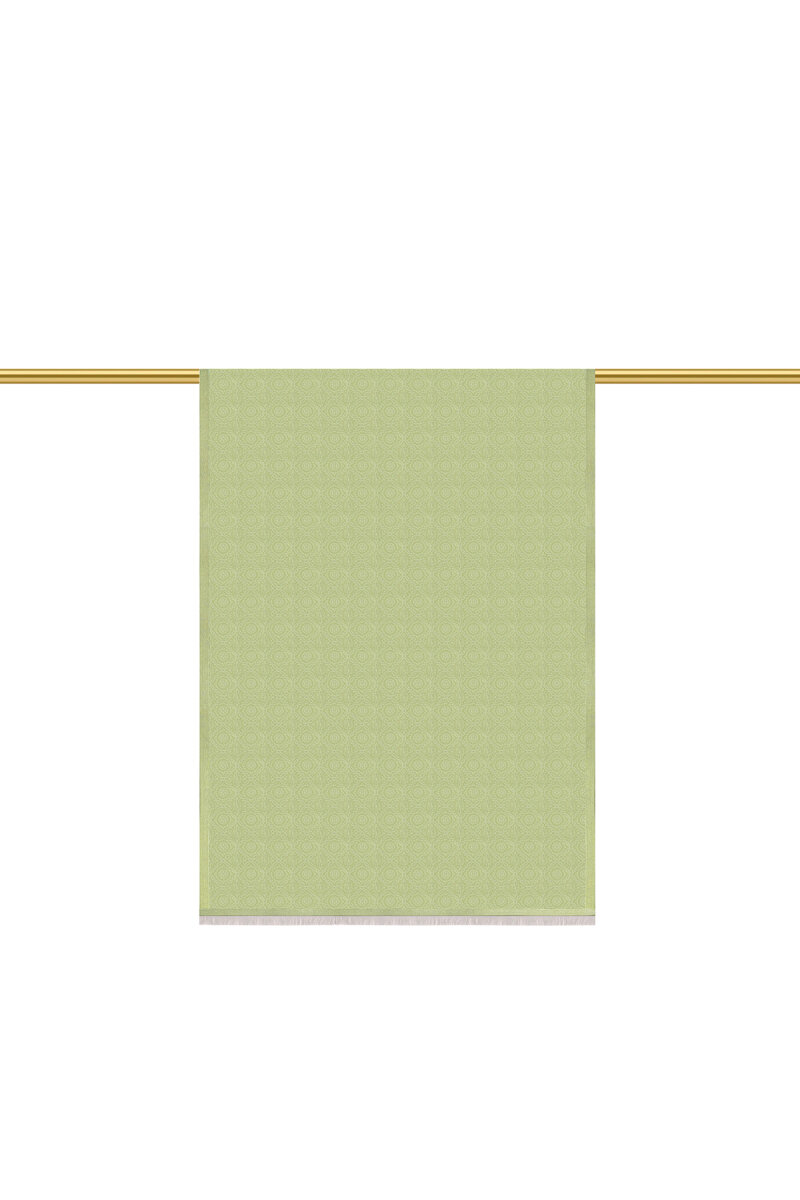 Açık Yeşil Halka Desen Jakarlı İpek Şal