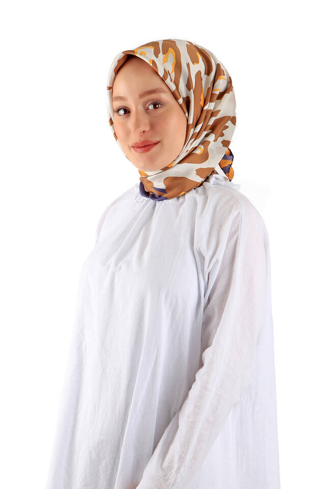 وشاح حريري بني منقوش بنقشة آريا