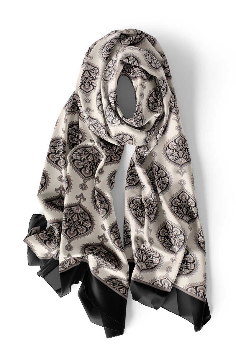 A special model that will add elegance to your style and complement your style from the most serious business meeting to the most elegant art gallery. Our Gray colored Hatai Pattern Silk Foulard model with eye-catching patterns offers ease of use with its 100% silk content and 55x160cm dimensions.