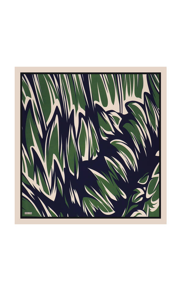 Navy Blue Ivy Pattern Sura Silk Scarf