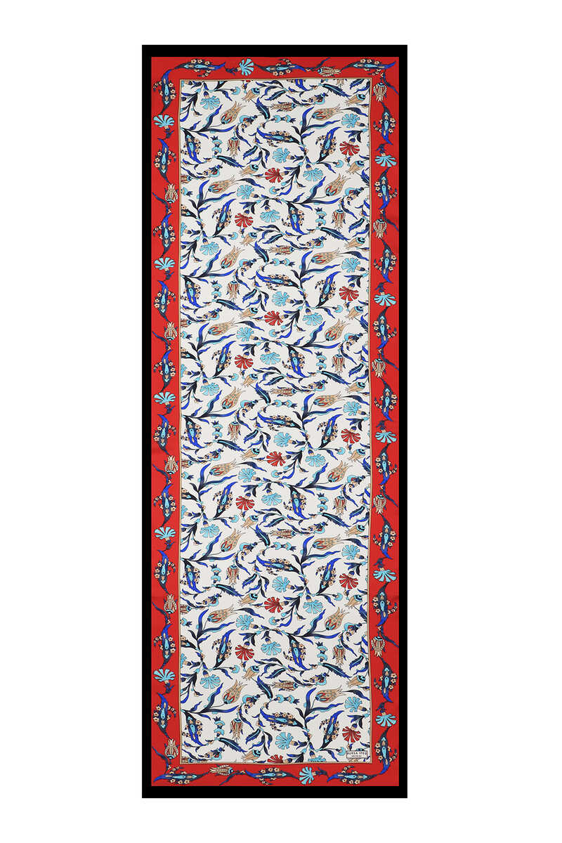 Şıklığınıza şıklık katarken, en ciddi iş toplantısından en zarif sanat galerisine kadar stilinizi tamamlayacak özel bir model. Göz alıcı desenlere sahip Kırmızı Lacivert renkli Karanfil Lale İpek Fular modelimiz, %100 ipek içeriği, 55x160cm boyutlarıyla kullanım kolaylığı sunuyor.