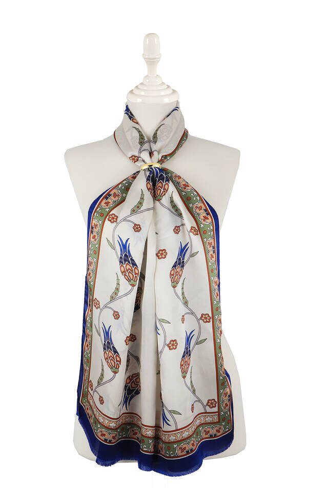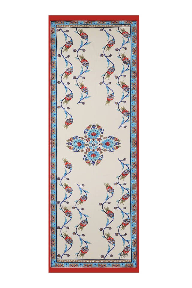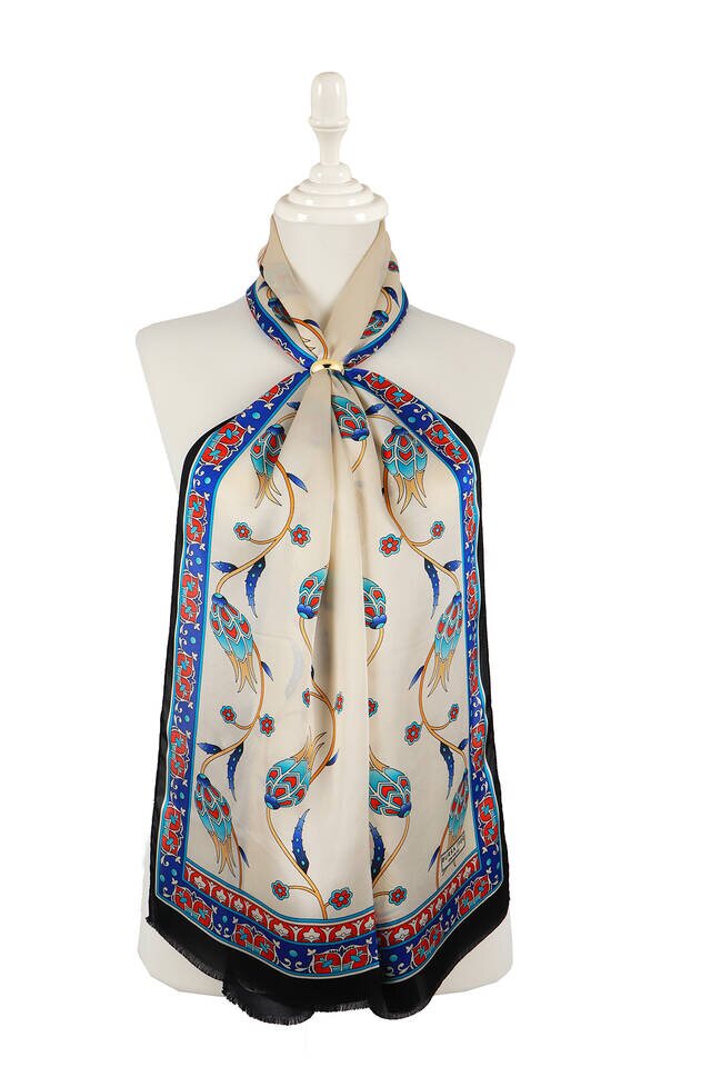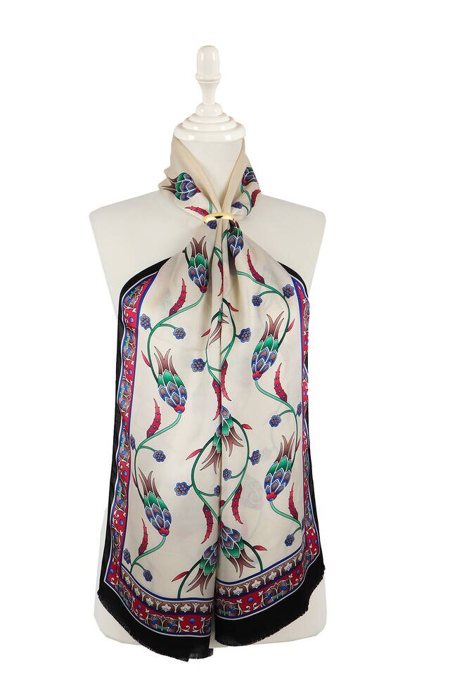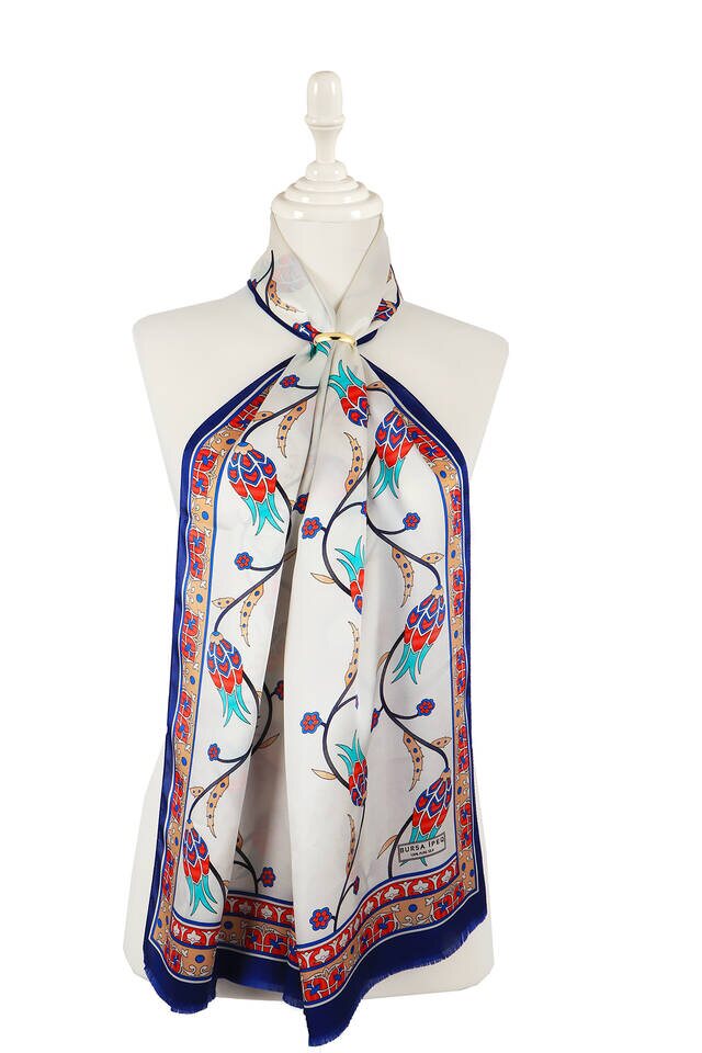 special model that will complement your style, from the most serious business meeting to the most elegant art gallery, while adding elegance to your elegance. Our Turquoise Red Line Tulip Silk Foulard model with eye-catching patterns offers ease of use with its 100% silk content and 55x160cm dimensions.