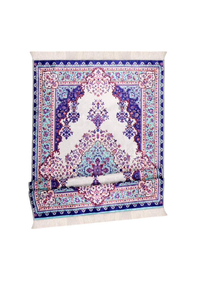 İpeksi dokusu, göz alıcı renkleri seccade halı modellerimiz dekoratif bir görünüm sunarken kadife dokusu 65 x115cm ebatları ile rahat kullanımınız için özel olarak tasarlanmıştır.