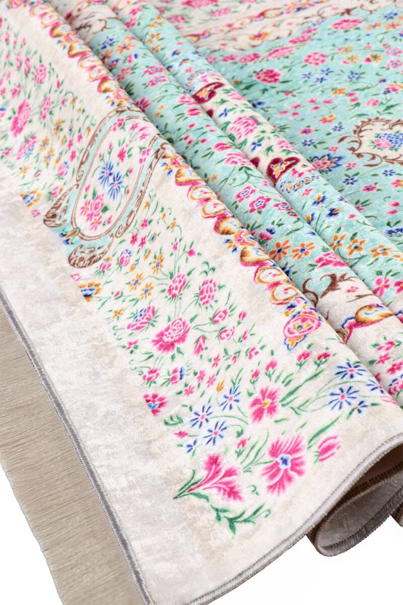 İpeksi dokusu, göz alıcı renkleri seccade halı modellerimiz dekoratif bir görünüm sunarken kadife dokusu 65 x115cm ebatları ile rahat kullanımınız için özel olarak tasarlanmıştır.