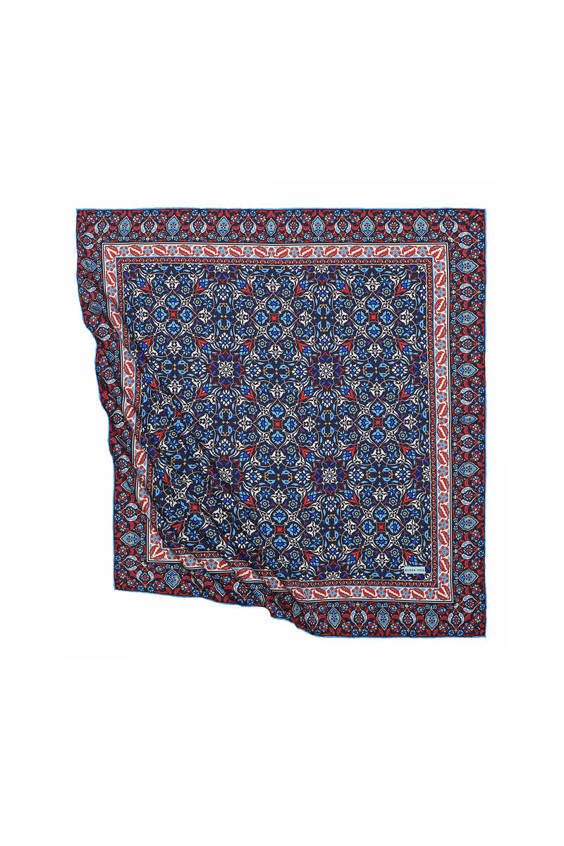 Siyah Çini desenlerinin ipeksi kumaş dokusu ile parlak ve canlı renklerle bir araya geldiği eğlenceli ve aynı zamanda klasik bir seçim… Çiçeklerin ipeksi dokuya büründüğü halleri ile hayata enerji katın! Ürünümüz: %100 ipeksi rayon kumaşı, 90x90 cm boyutlarıyla kullanım kolaylığı sunuyor.