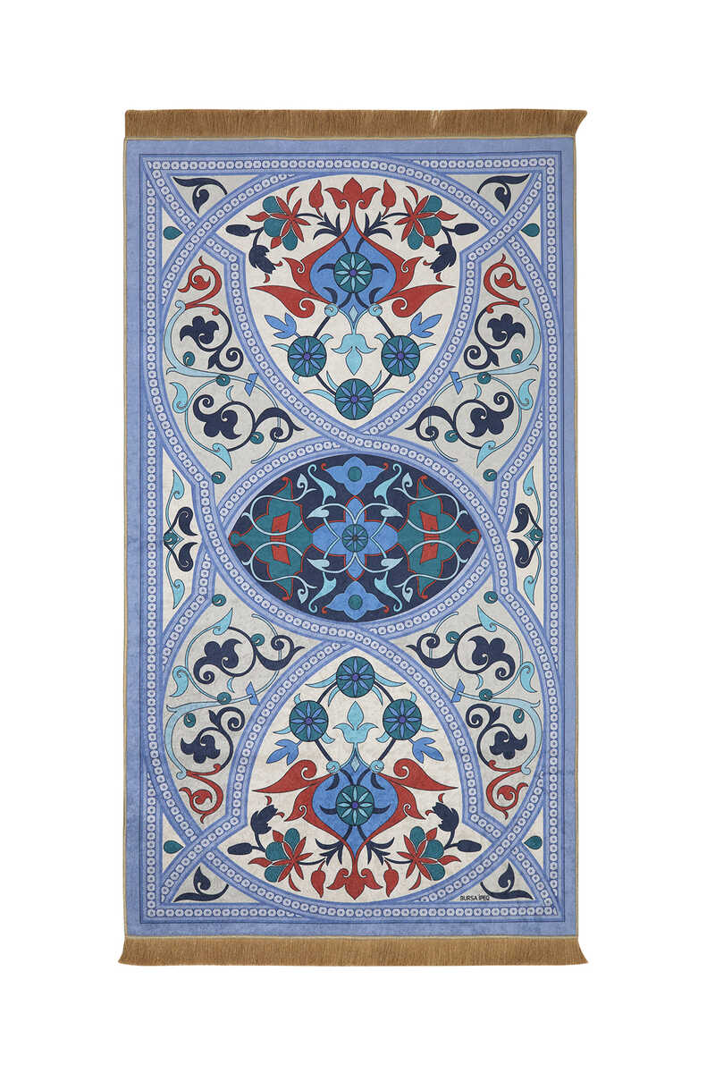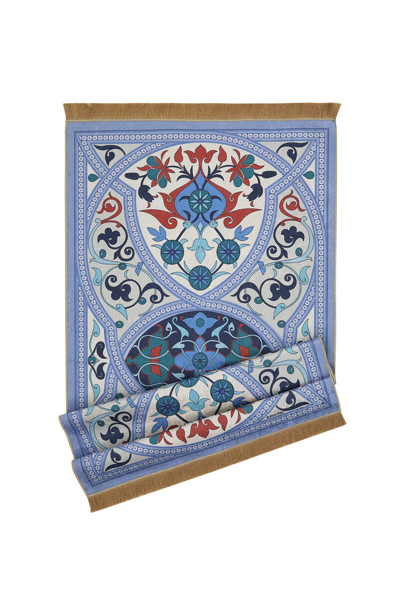 With its silky texture and eye-catching colors, our Turkish motif and tile patterned prayer rug models offer a decorative look, while the velvet texture is specially designed for your comfortable use with 65x115cm dimensions.