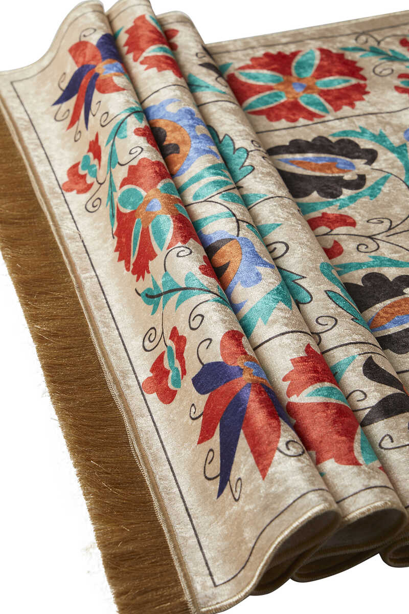 İpeksi dokusu, göz alıcı renkleri ile Türk motifli ve Çini desenli seccade halı modellerimiz dekoratif bir görünüm sunarken kadife dokusu 65x115cm ebatları ile rahat kullanımınız için özel olarak tasarlanmıştır.