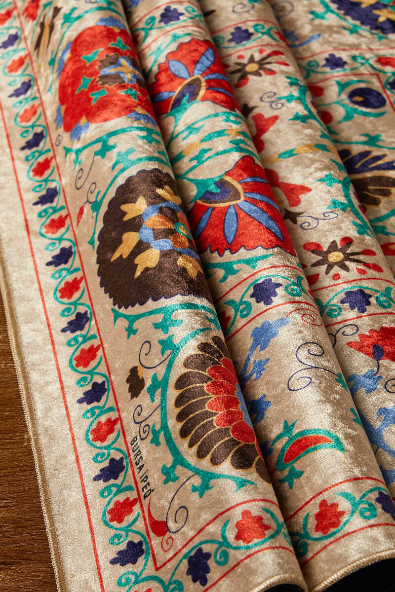İpeksi dokusu, göz alıcı renkleri ile Türk motifli ve Çini desenli seccade halı modellerimiz dekoratif bir görünüm sunarken kadife dokusu 65x115cm ebatları ile rahat kullanımınız için özel olarak tasarlanmıştır.