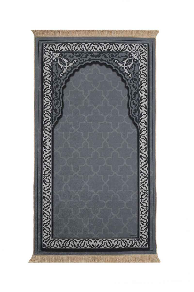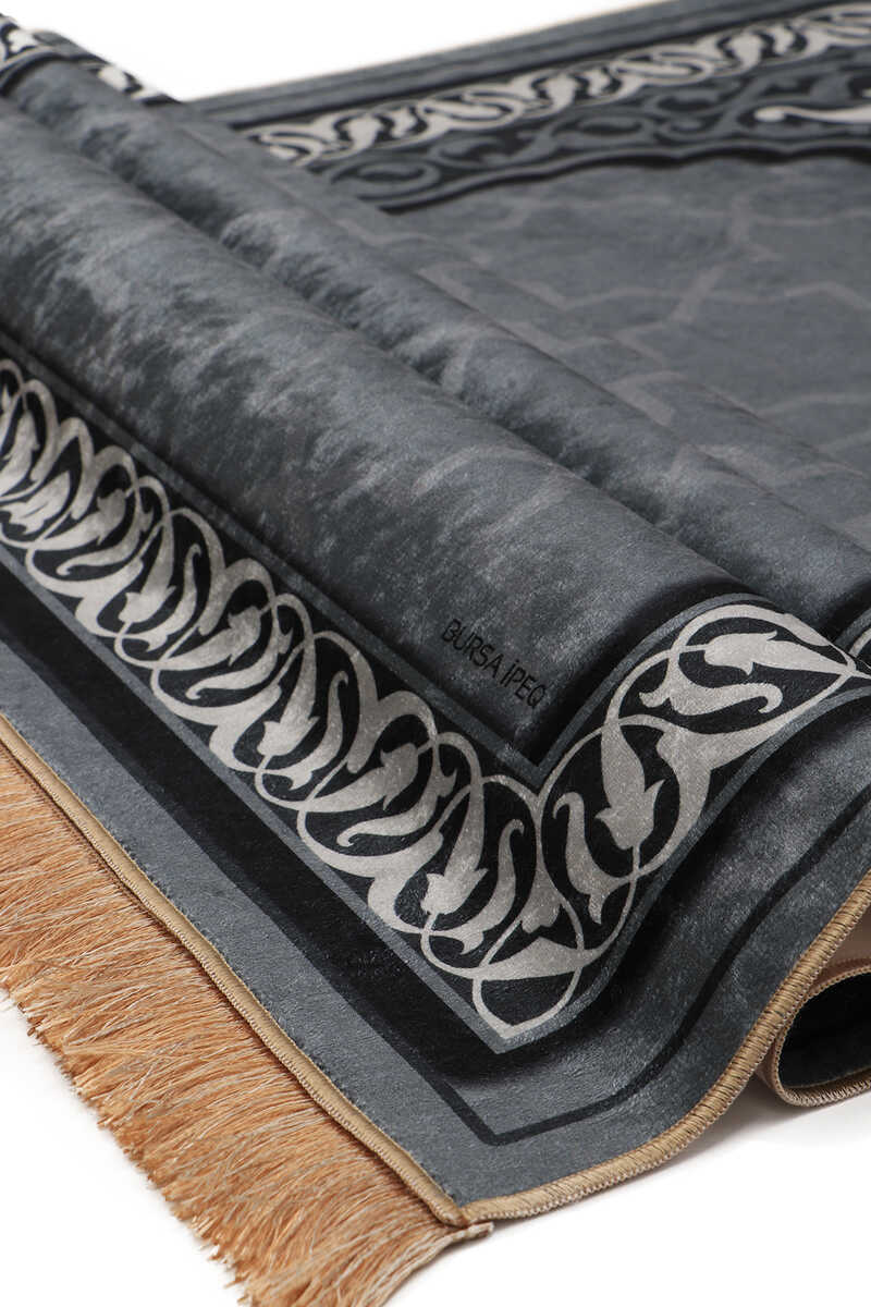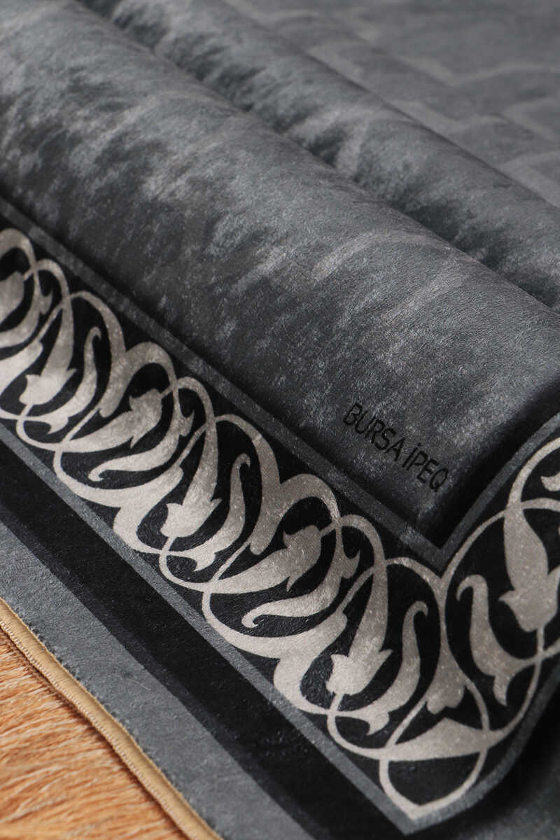 Koyu Gri Kadife Halı Seccade