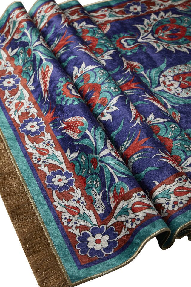 With its silky texture and eye-catching colors, our Turkish motif and tile patterned prayer rug models offer a decorative look, while the velvet texture is specially designed for your comfortable use with 65x115cm dimensions.