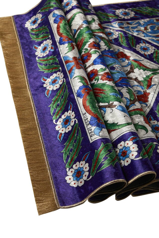 With its silky texture and eye-catching colors, our Turkish motif and tile patterned prayer rug models offer a decorative look, while the velvet texture is specially designed for your comfortable use with 65x115cm dimensions.