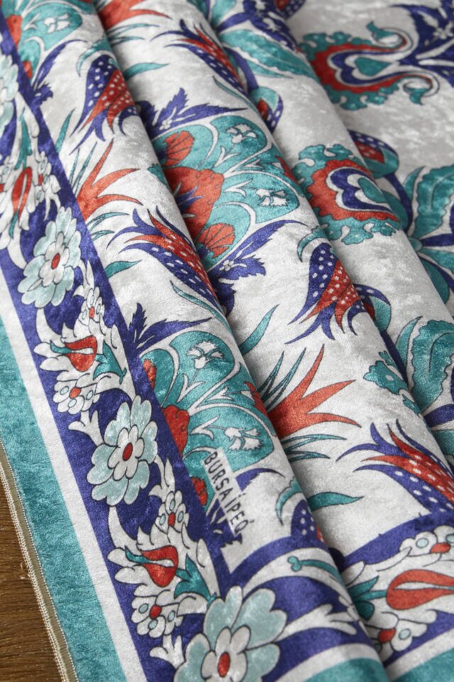 With its silky texture and eye-catching colors, our Turkish motif and tile patterned prayer rug models offer a decorative look, while the velvet texture is specially designed for your comfortable use with 65x115cm dimensions.