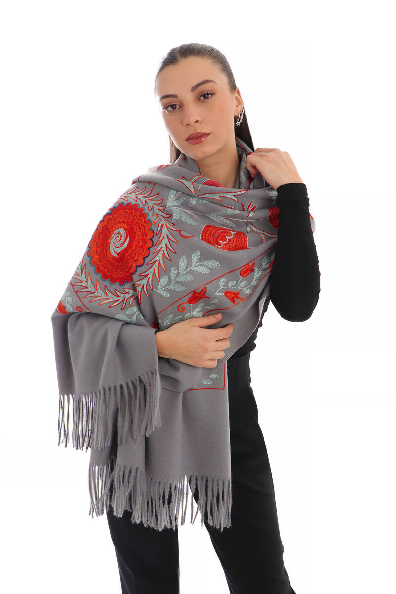 Serin kış günlerinde sizleri sıcak tutmak için özenle üretilen Füme Nakışlı Kışlık Şallarımız renk ve desenleri ile dikkat çekiyor. Ürünümüz akrilik içeriği, 70x190 cm boyutlarıyla kullanım kolaylığı sunuyor.