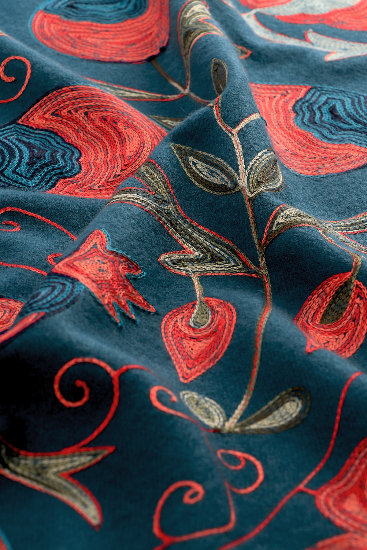 Kırmızı Nakışlı Kışlık Şal