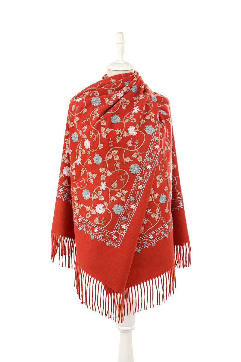 Our Cinnamon Embroidered Winter Shawls, carefully crafted to keep you warm on chilly winter days, stand out with their striking colors and patterns. Made of acrylic and measuring 70x190 cm, they offer ease of use.