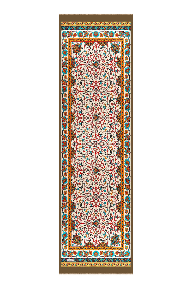 A special model that will add a touch of elegance to your look, complementing your style from the most serious business meeting to the most elegant art gallery. Our Khaki Ivy Pattern Narrow Silk Scarf, featuring eye-catching patterns, offers ease of use with its 100% silk content and 45 x 165 cm dimensions.