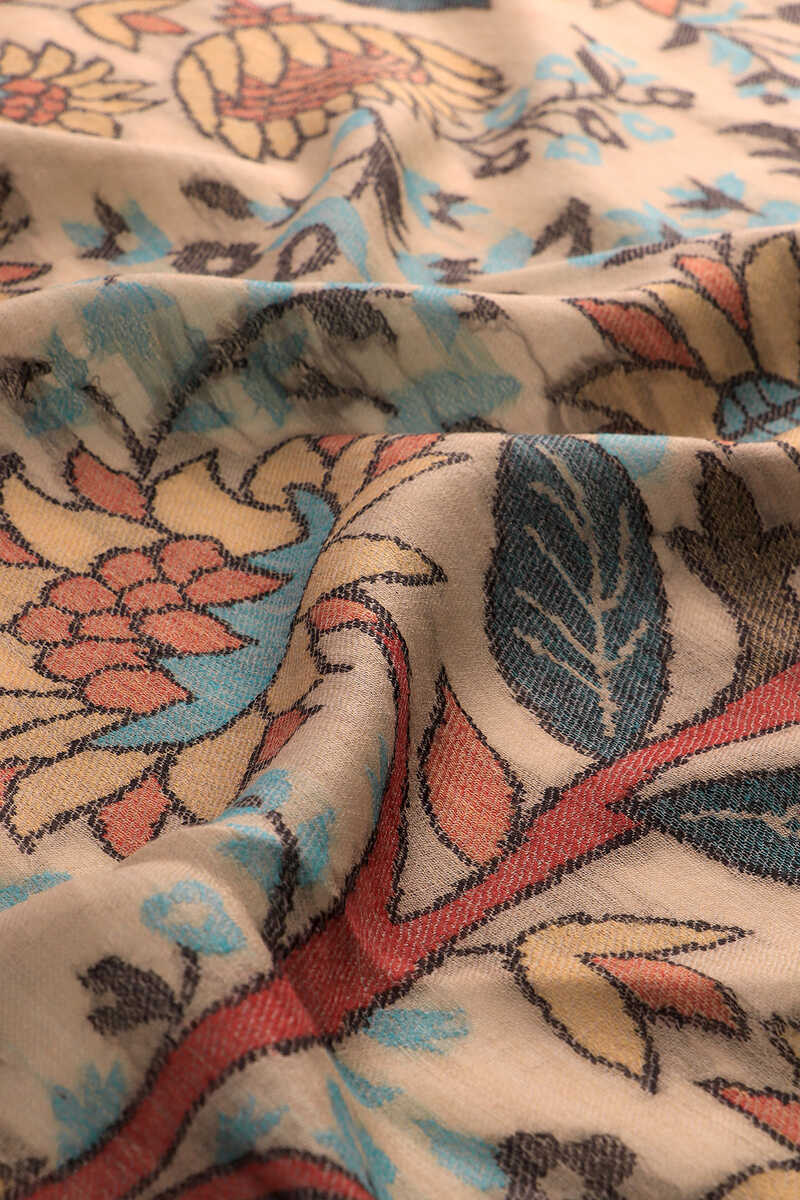 Our Beige Jacquard Patterned Wool Shawls, carefully produced to keep you warm on cool winter days, attract attention with their special embroidery and colors. Our product offers ease of use with its 100% wool content and dimensions of 75 x 210 cm.