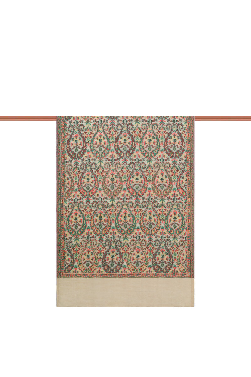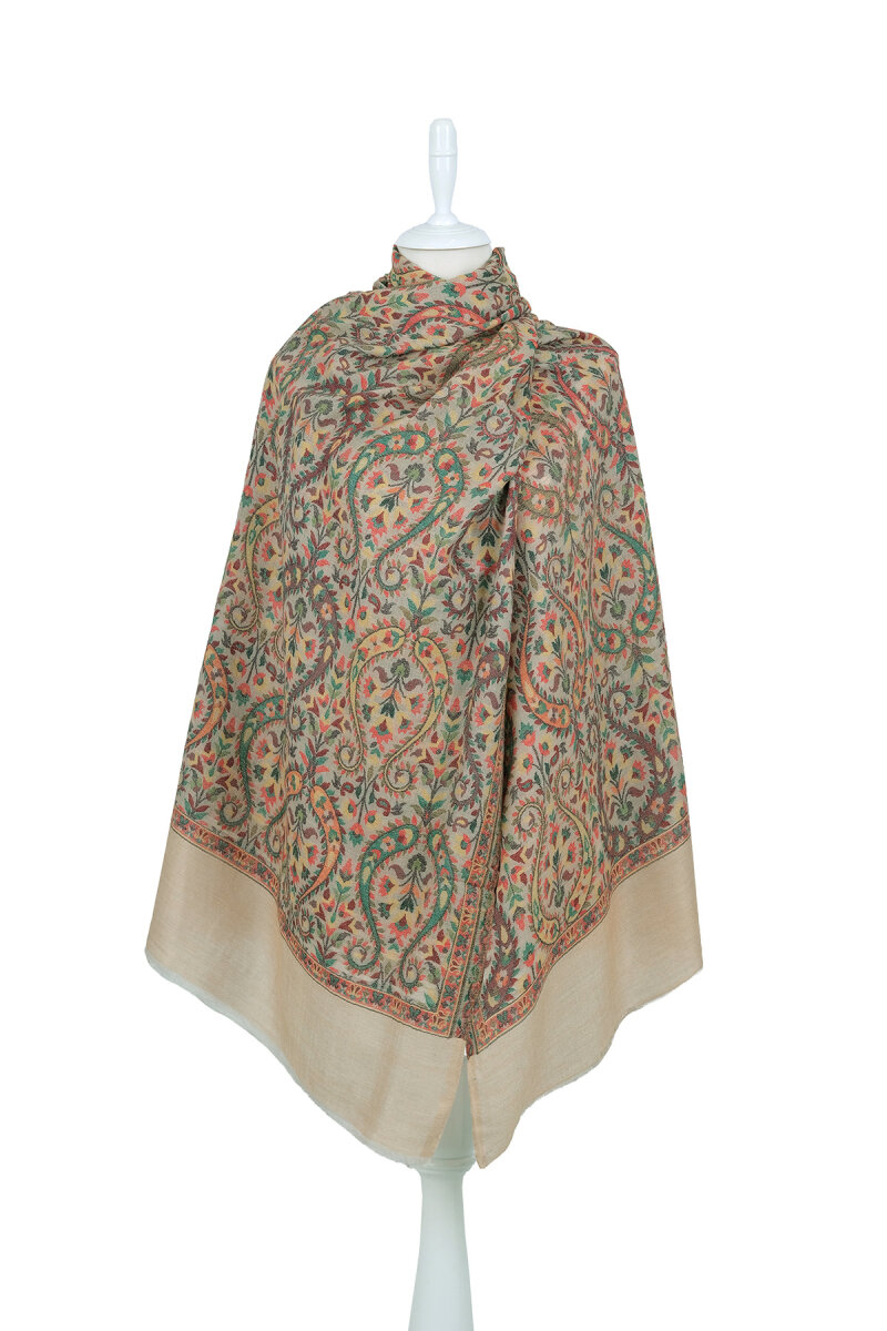 Serin kış günlerinde sizleri sıcak tutmak için özenle üretilen Sütlü Kahve Jakar Desenli Yün Şalllarımız özel işlemeleri ve renkleri ile dikkatleri üzerinize çekiyor. Ürünümüz %100 yün içeriği, 75 x 210 cm boyutlarıyla kullanım kolaylığı sunuyor.