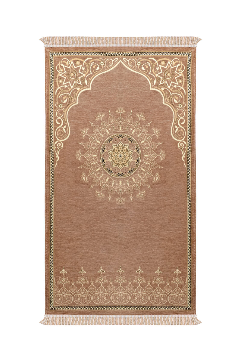 Bej Mandala Desen Kabartmalı Özel Dokuma Seccade
