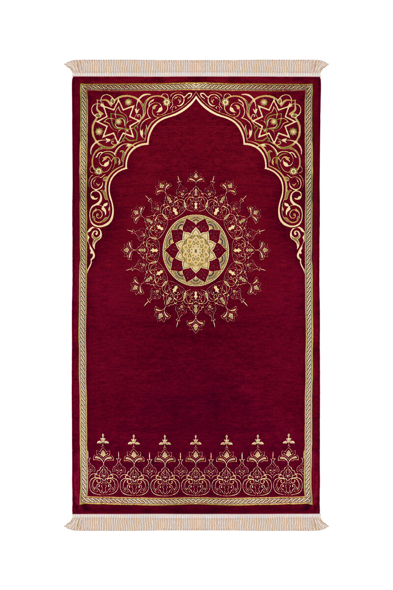 Bordo Mandala Desen Kabartmalı Özel Dokuma Seccade