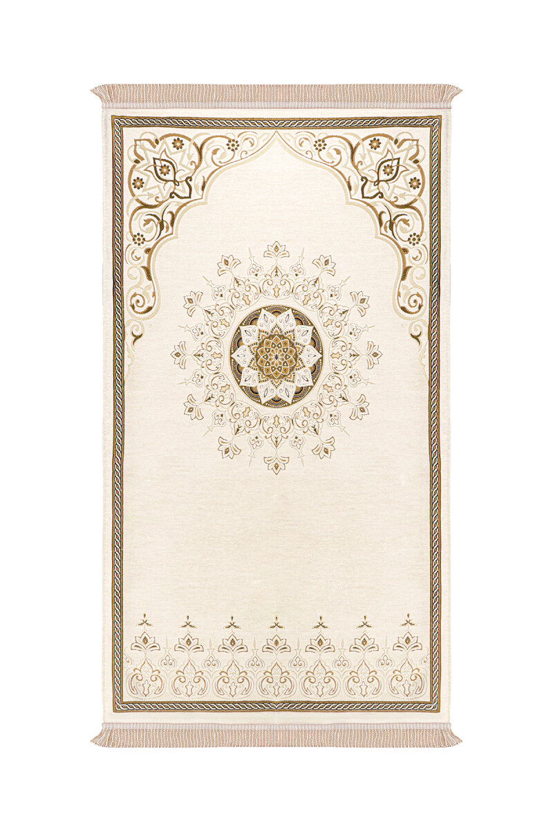 Krem Mandala Desen Kabartmalı Özel Dokuma Seccade