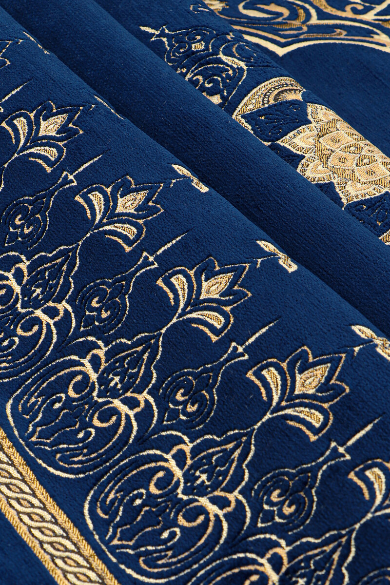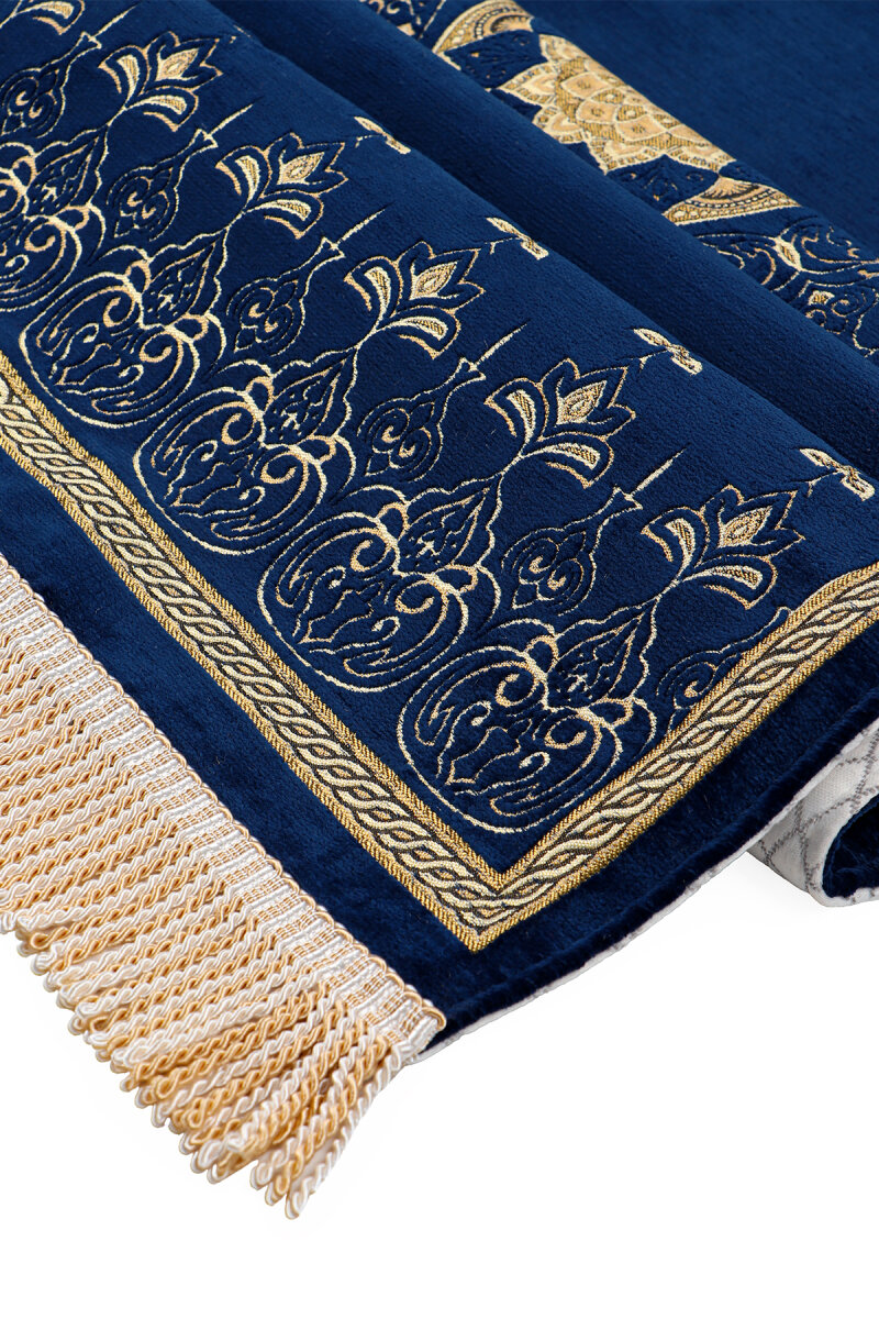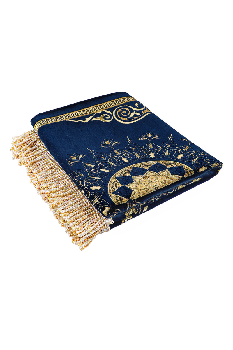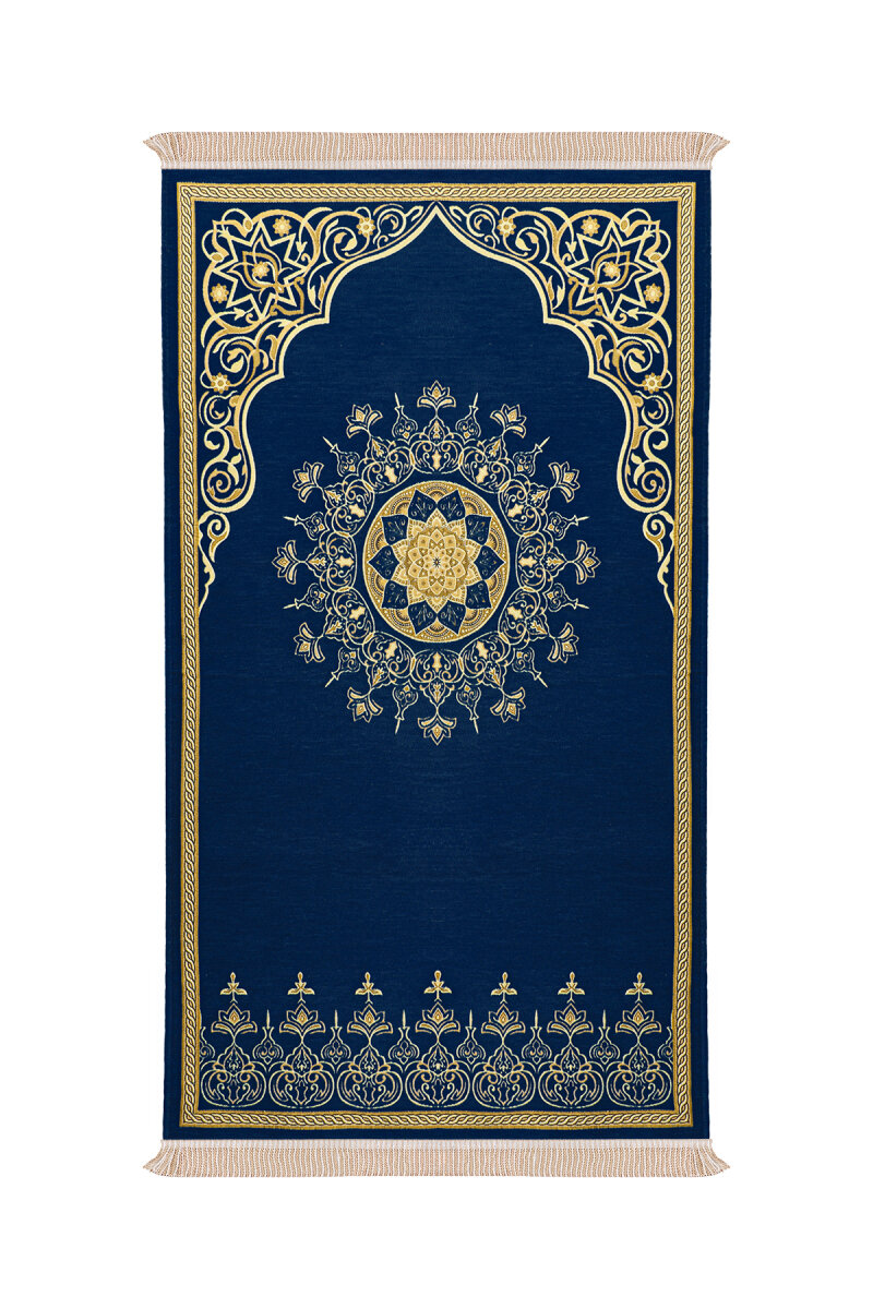Lacivert Mandala Desen Kabartmalı Özel Dokuma Seccade