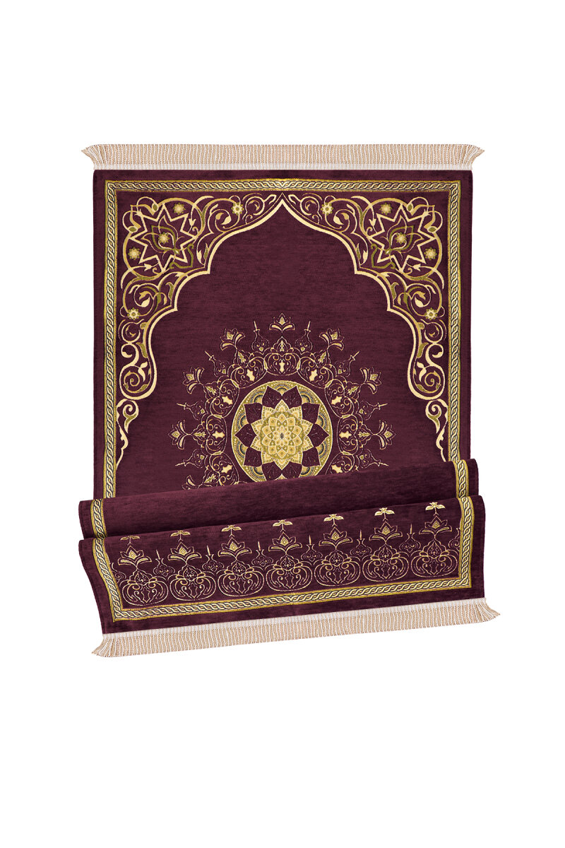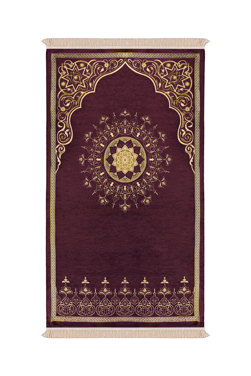 Mürdüm Mandala Desen Kabartmalı Özel Dokuma Seccade