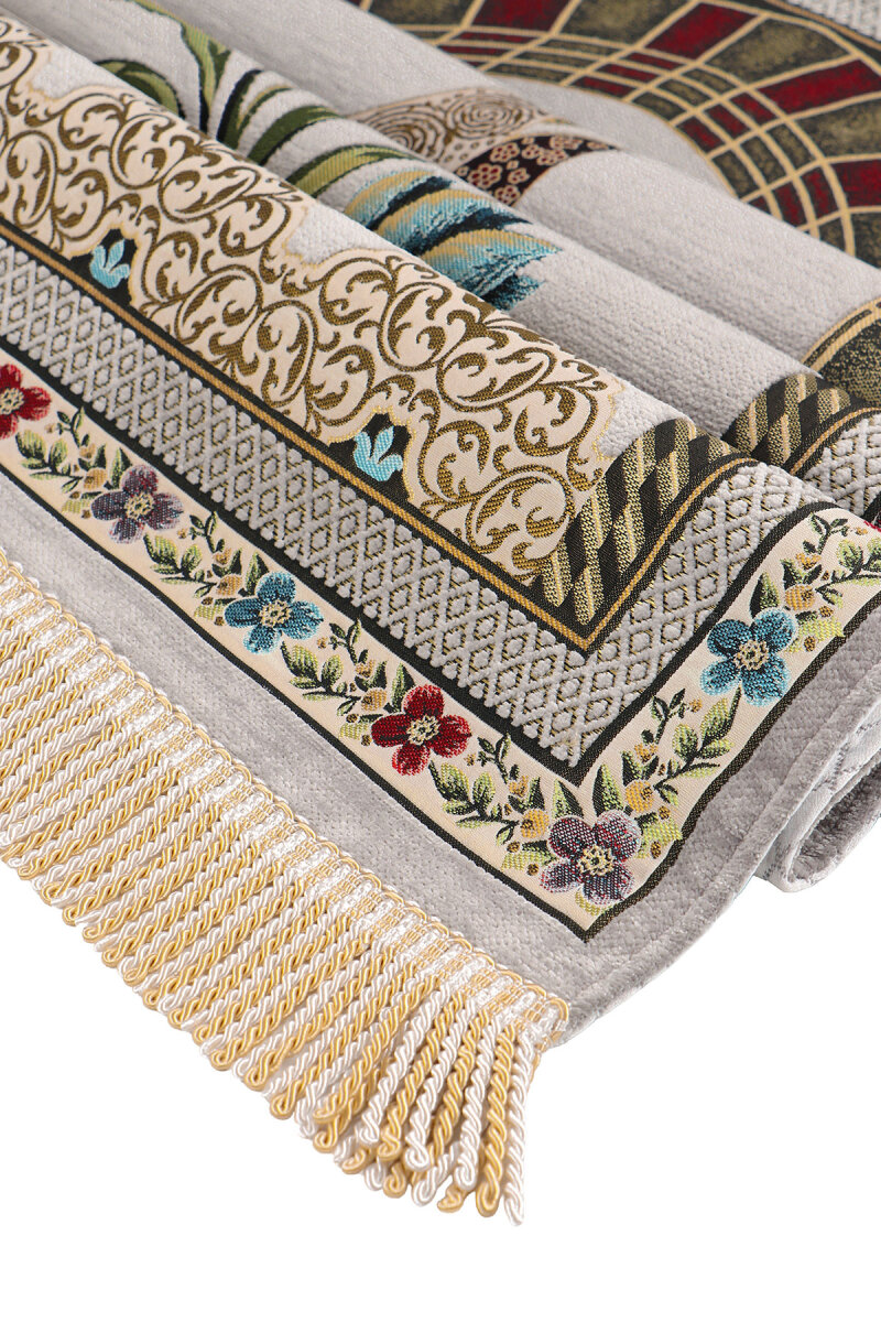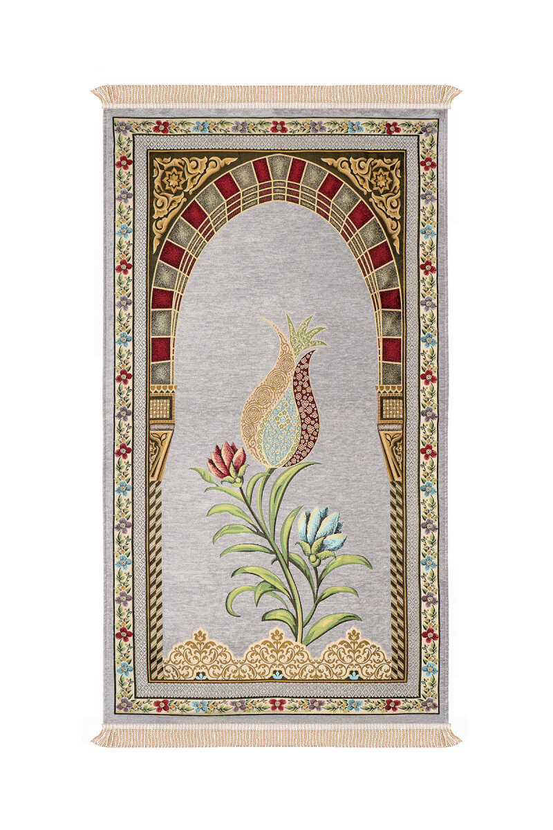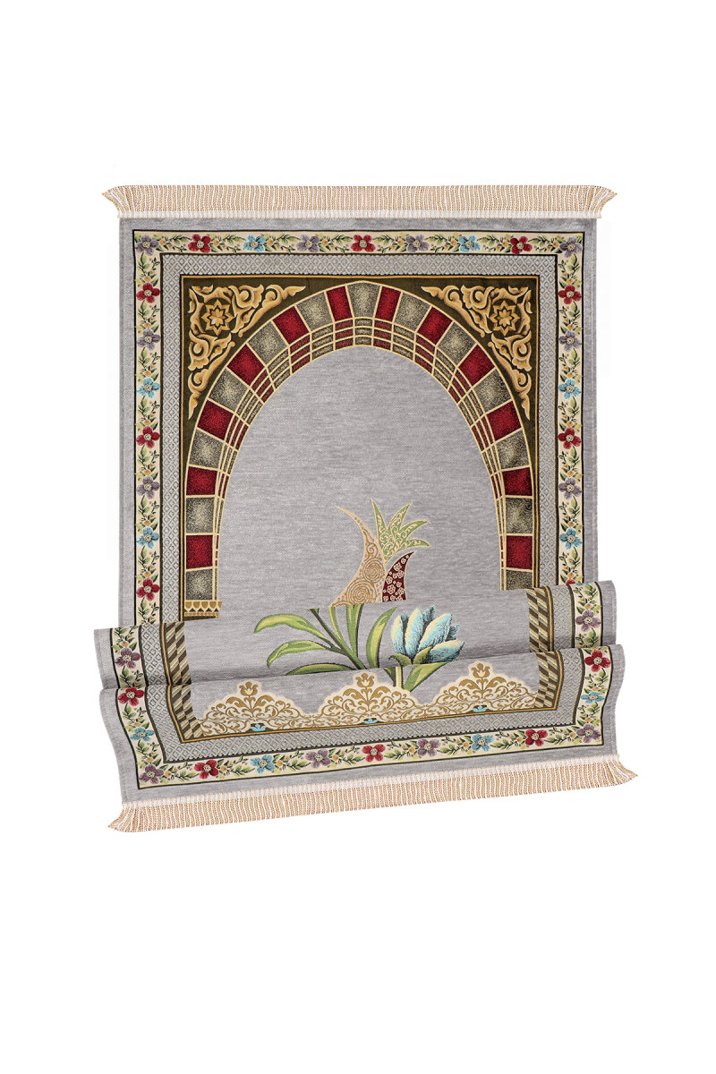 Gri Mihrap Lale Desen Kabartmalı Özel Dokuma Seccade