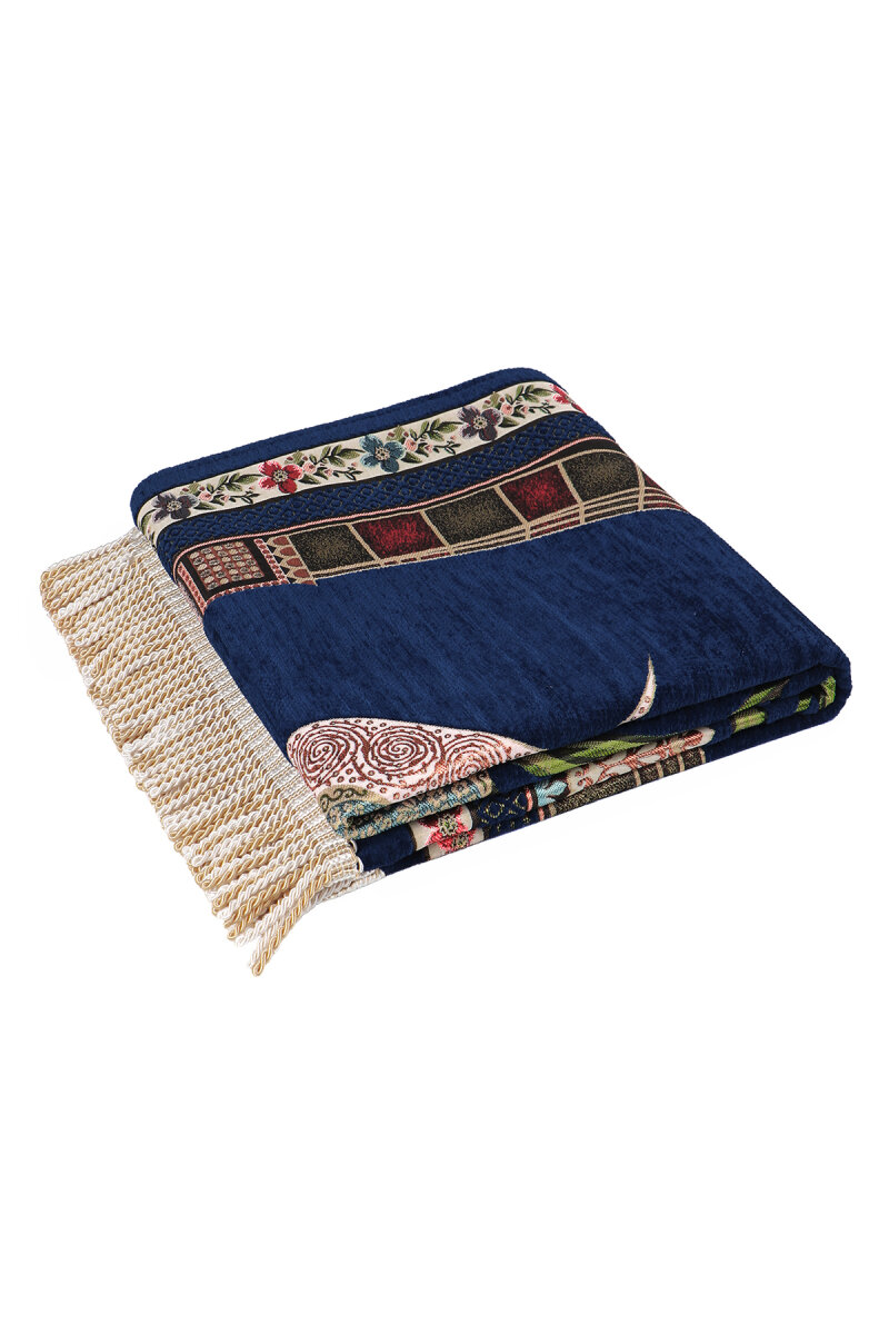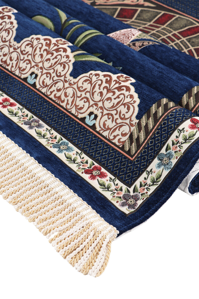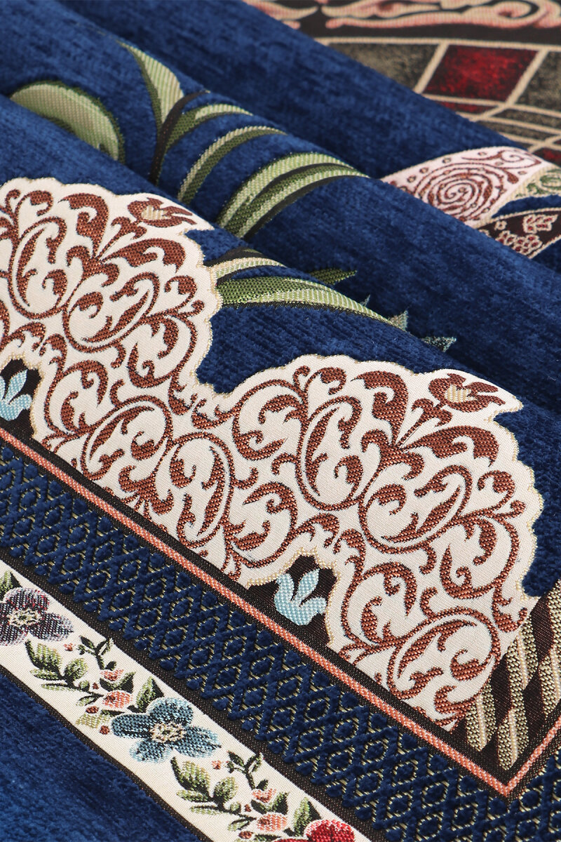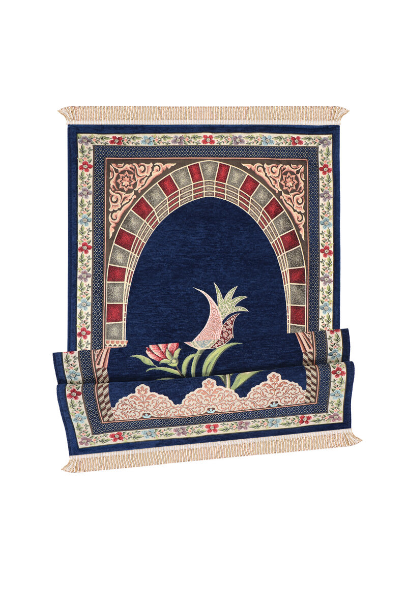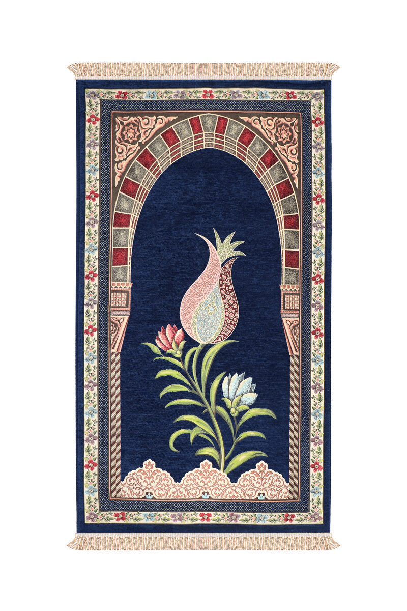 Lacivert Mihrap Lale Desen Kabartmalı Özel Dokuma Seccade