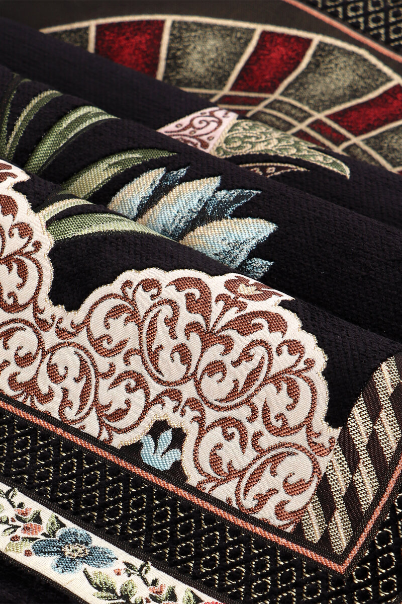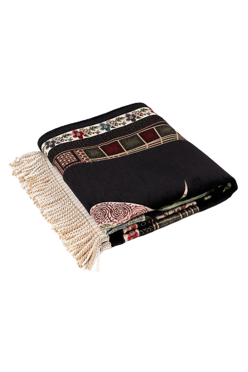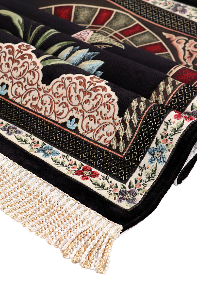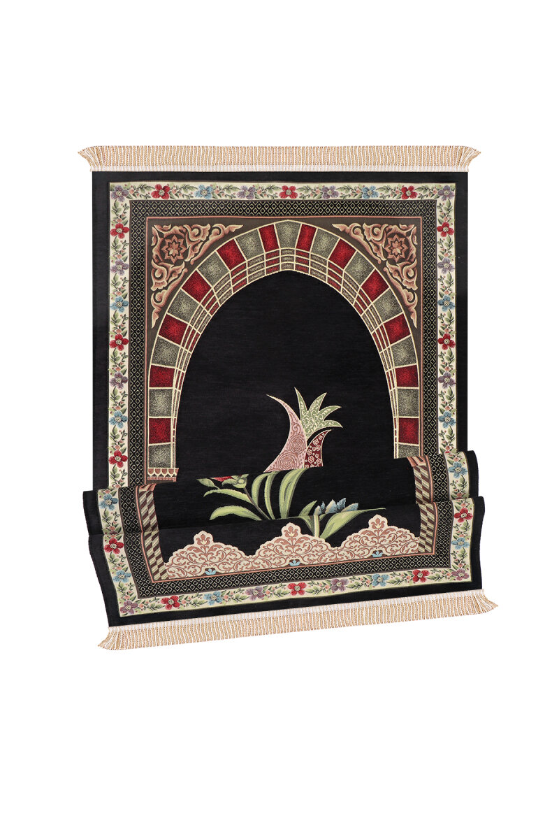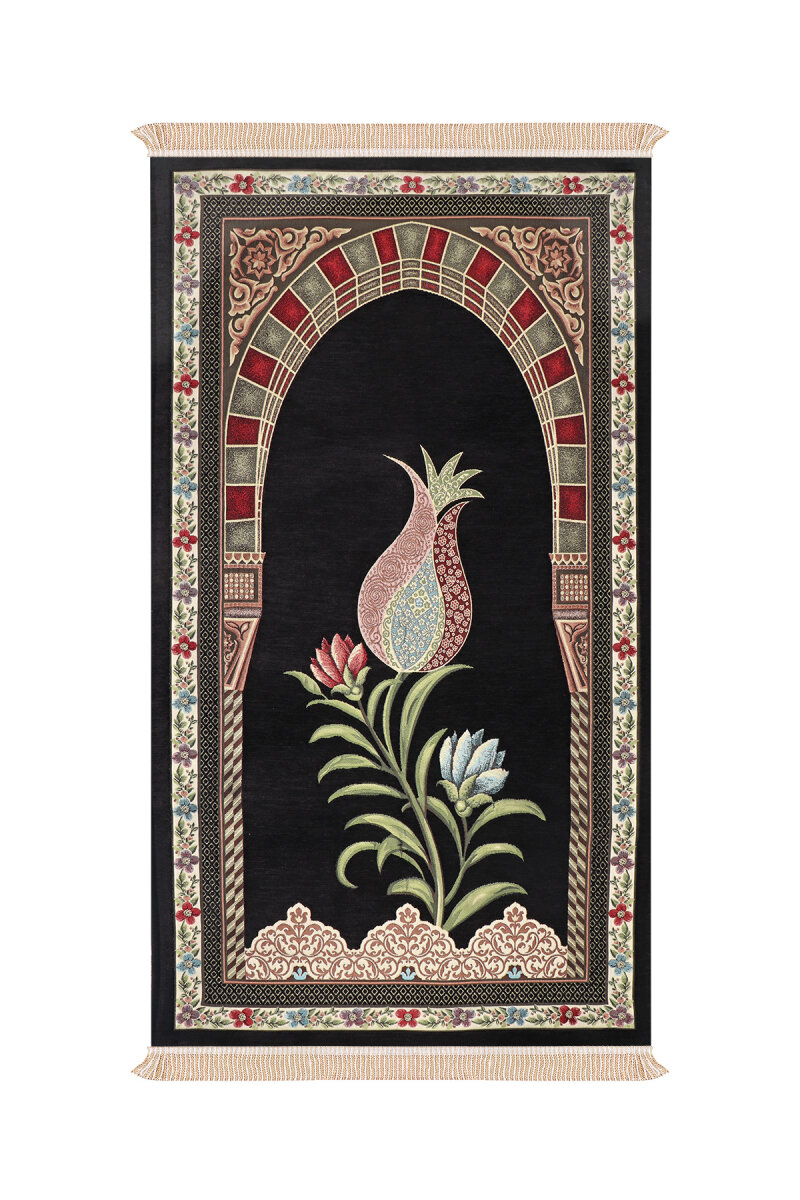 Siyah Mihrap Lale Desen Kabartmalı Özel Dokuma Seccade