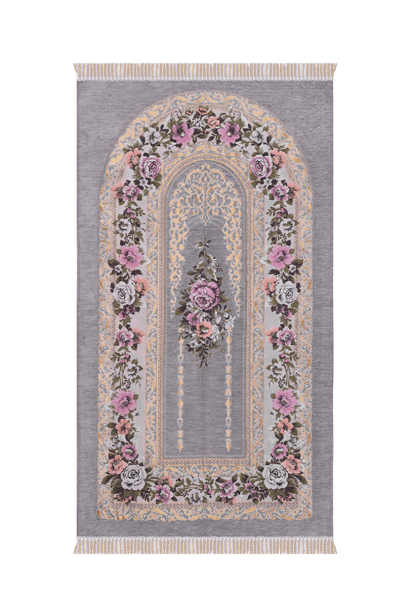 Gri Mihrap Desen Kabartmalı Özel Dokuma Seccade