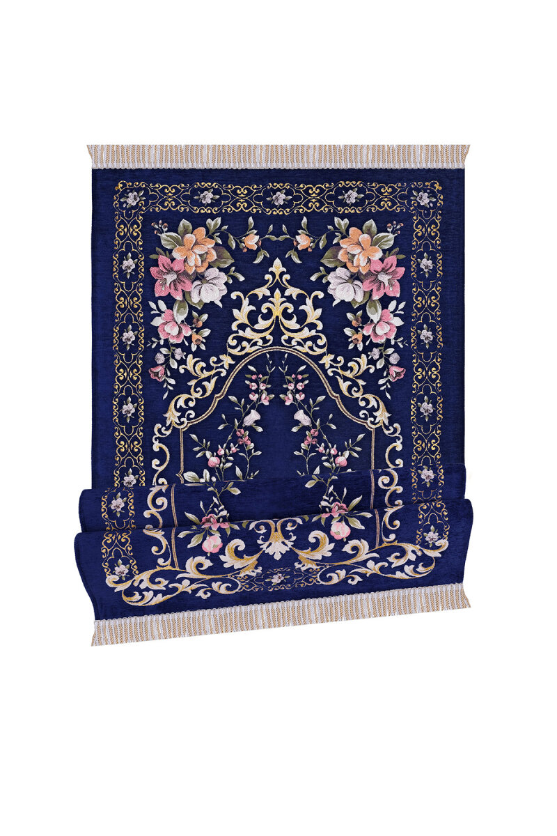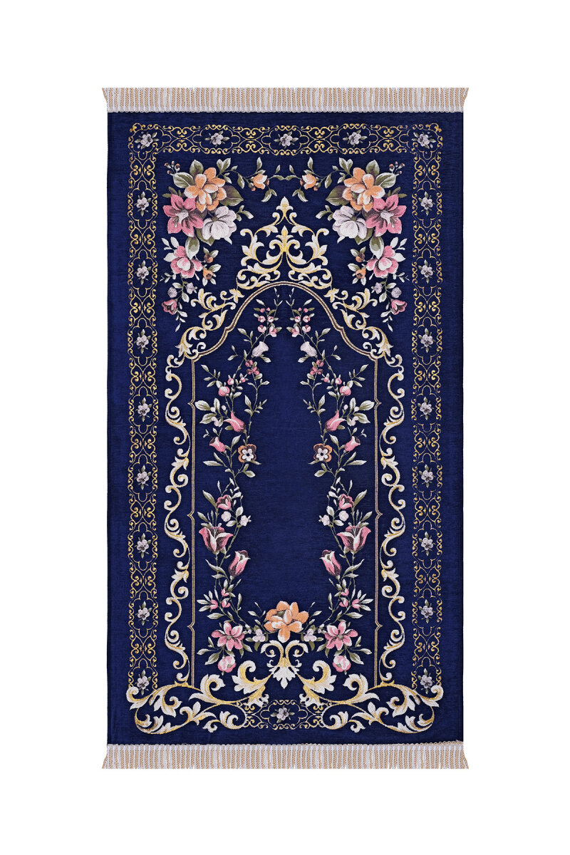 Lacivert Gülbahçe Desen Kabartmalı Özel Dokuma Seccade