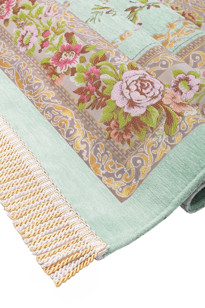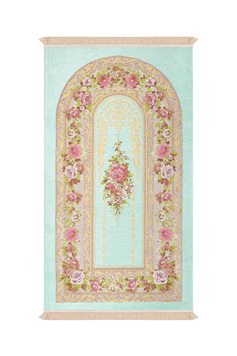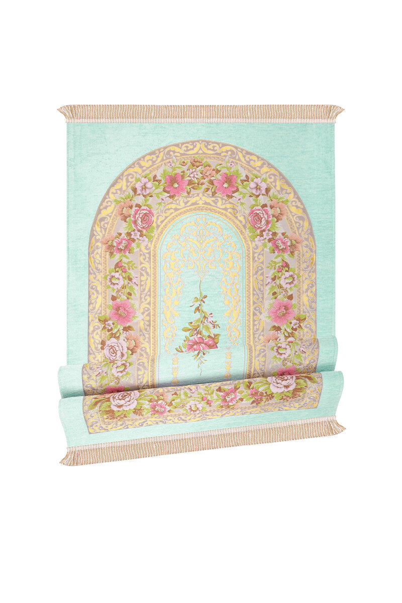Su Yeşil Mihrap Desen Kabartmalı Özel Dokuma Seccade