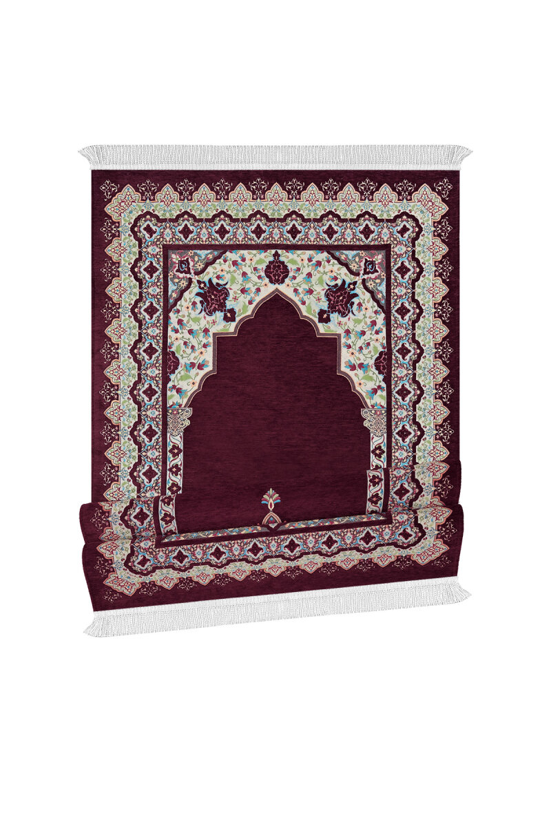 Mürdüm Rumi Desen Kabartmalı Özel Dokuma Seccade