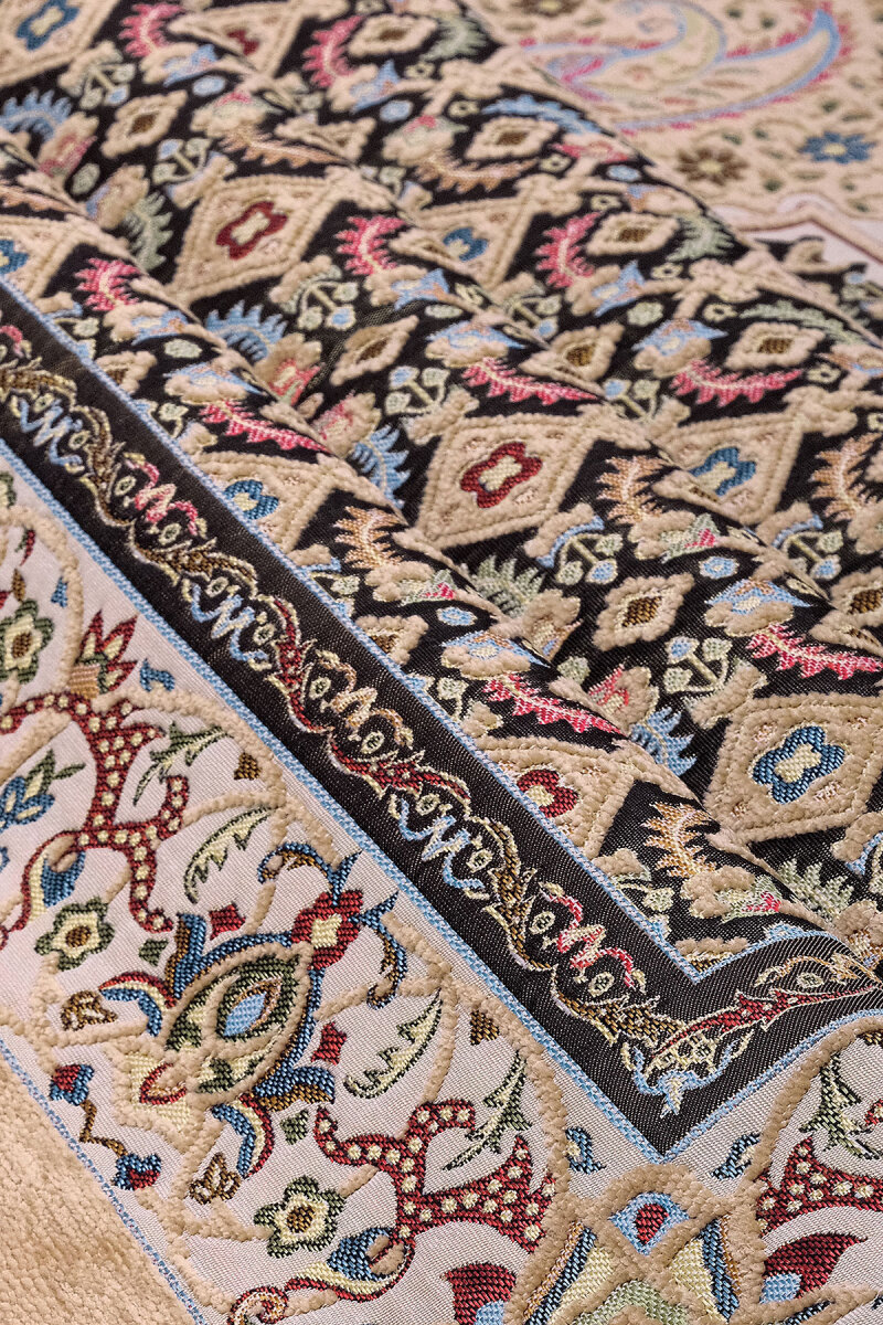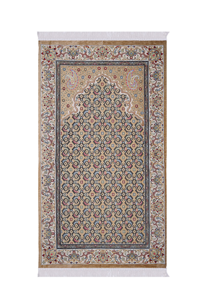Bej Şal Desen Kabartmalı Özel Dokuma Seccade