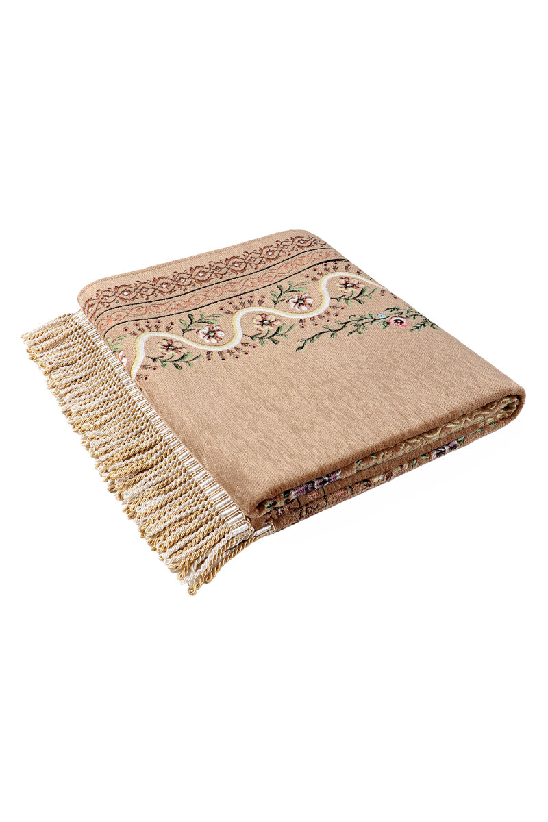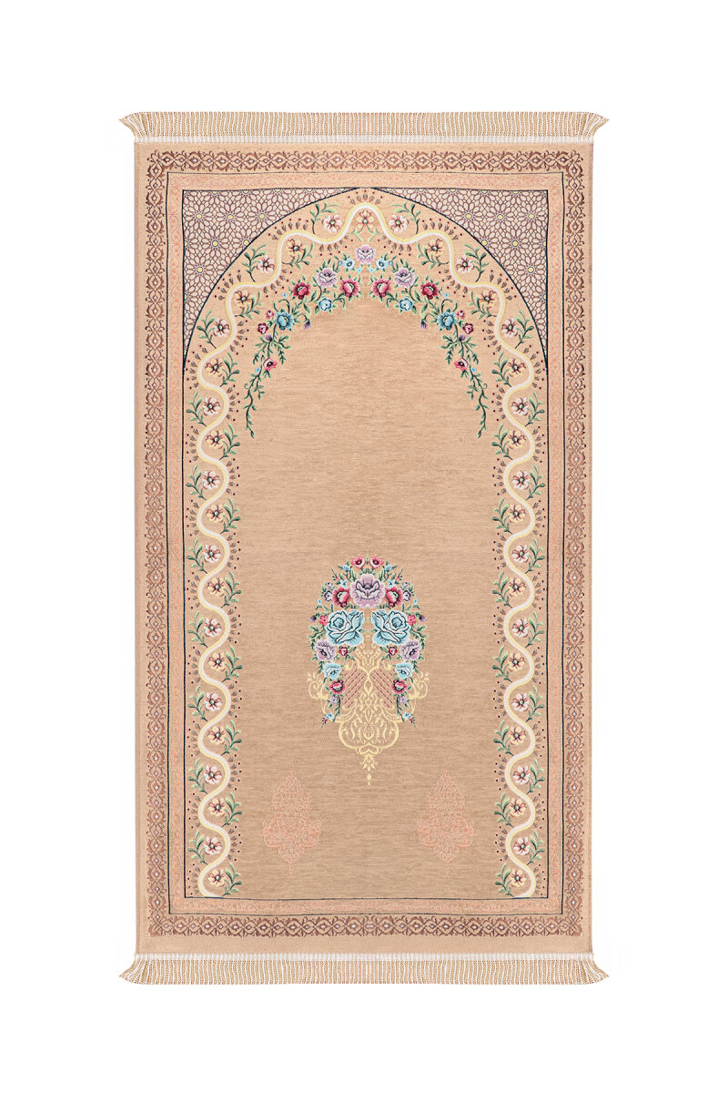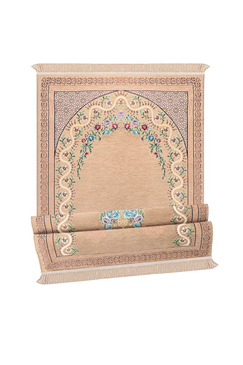 Bej Sarmaşık Desen Kabartmalı Özel Dokuma Seccade